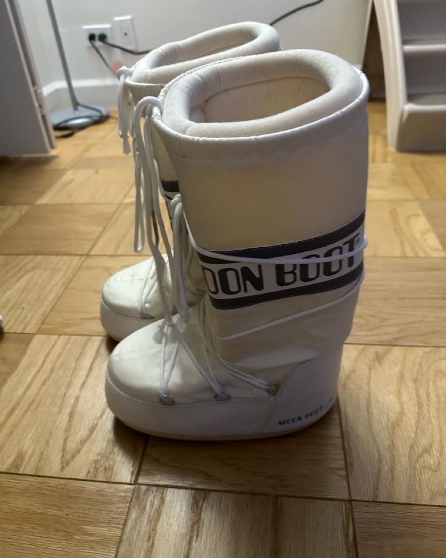 White moon boots great for a ski trip and snow. Fits size 9/10