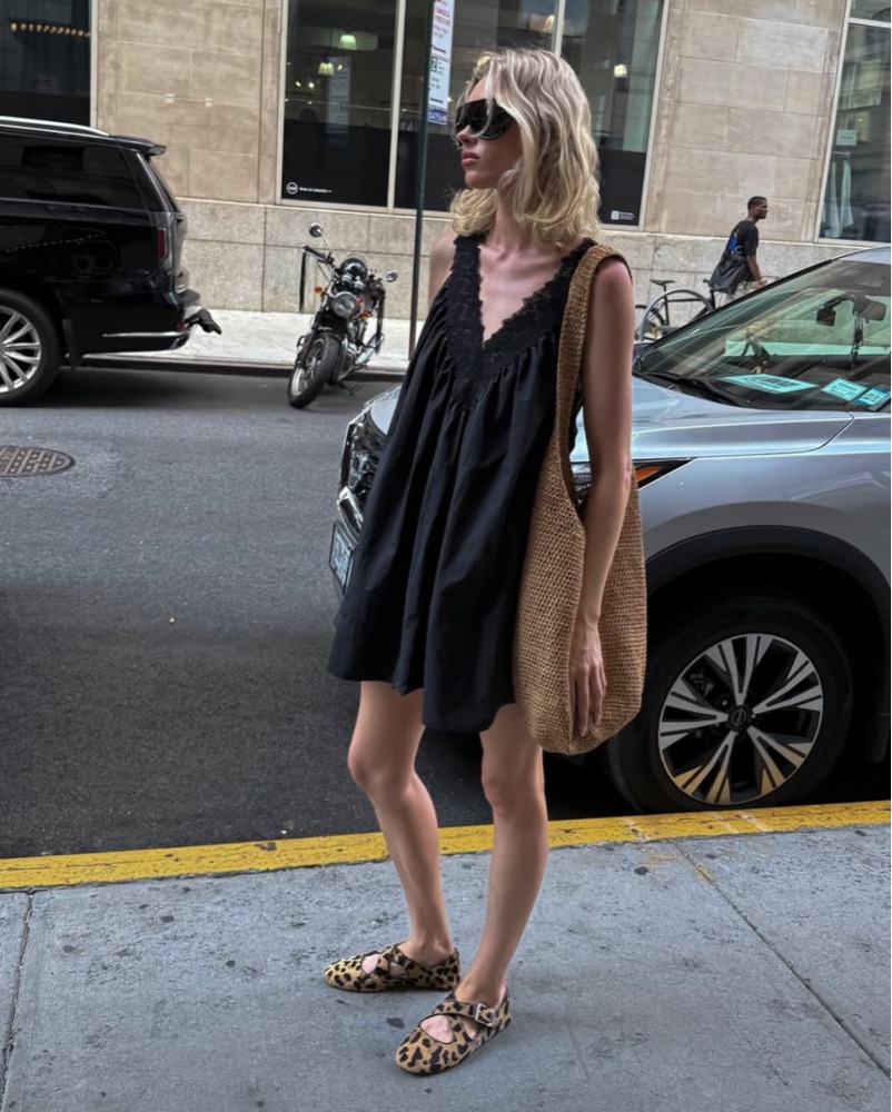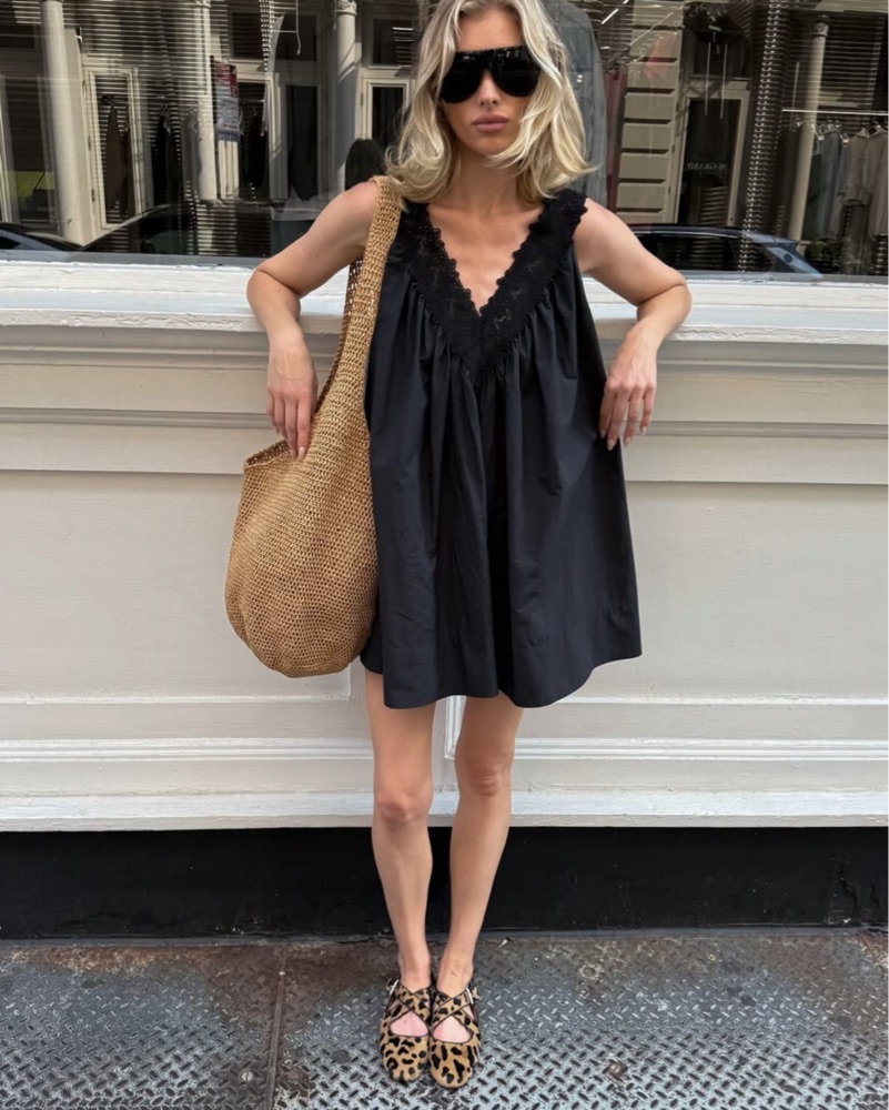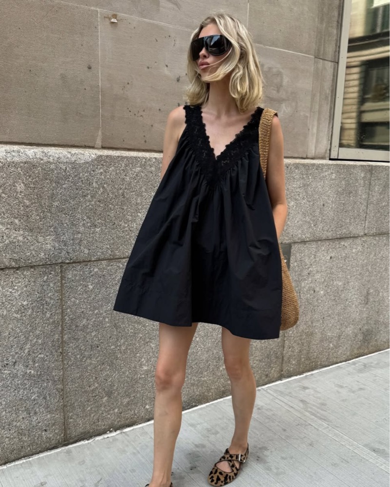 mini flowly and loose black tech poplin dress from helsa’s new summer love drop. super good for casual summer wear. runs big imo
