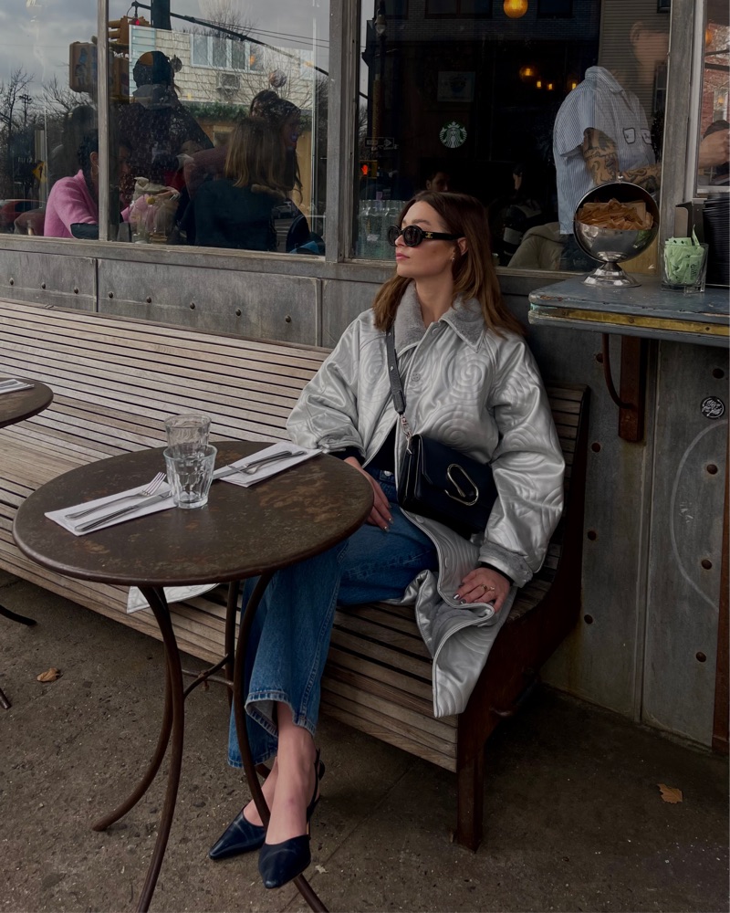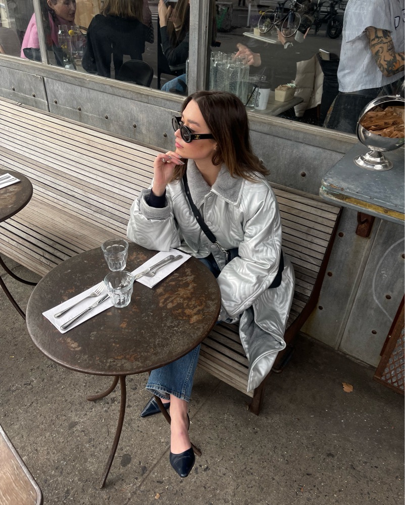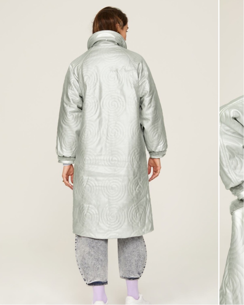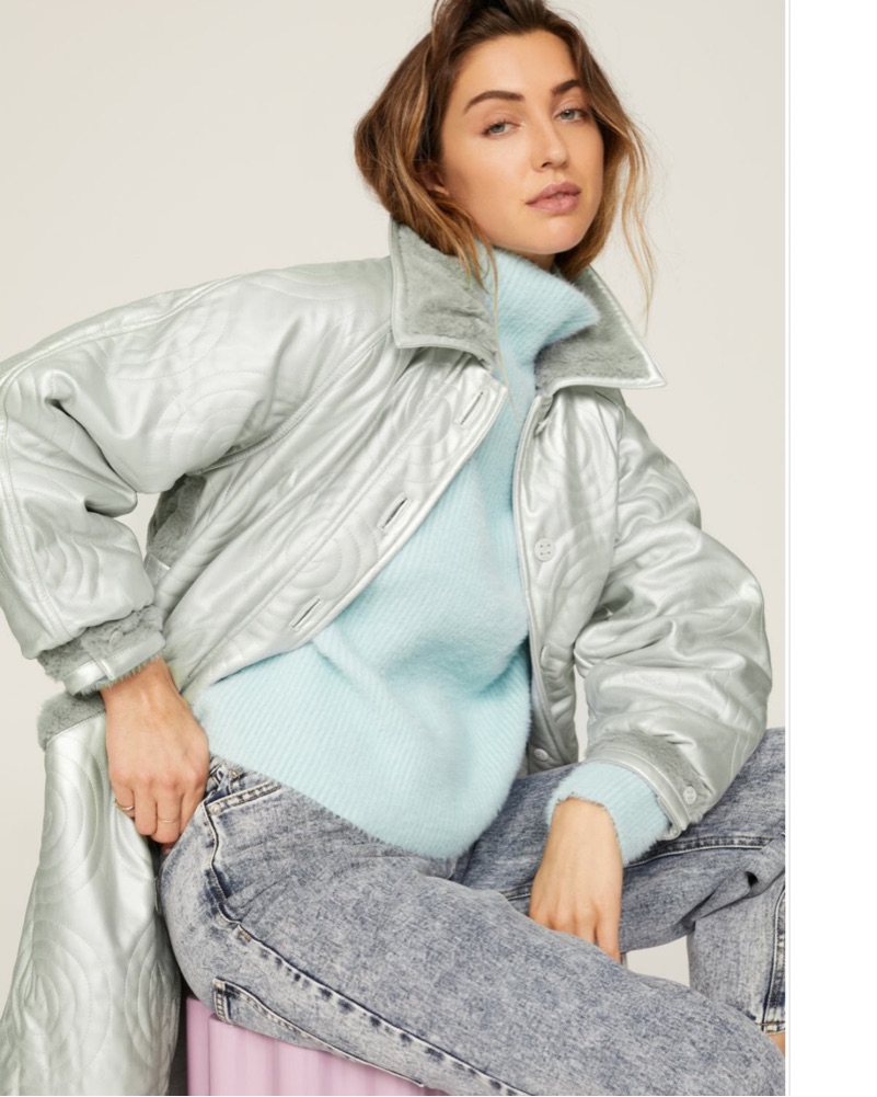 One of my all-time favorite coats... this coat is so fluffy and feels like a blanket on the inside, but it has a really beautiful leather leg texture on the outside. It's super modern and looks good with everything.