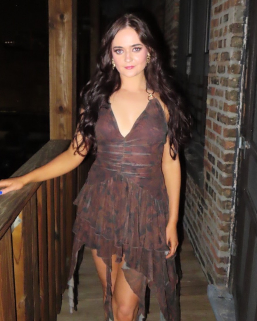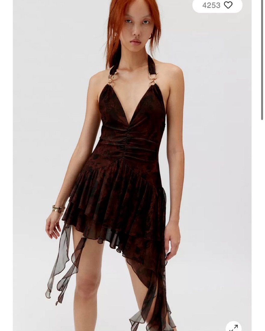 Gorgeous brown dress from UO with gold hardware. I am absolutely obsessed with how good it looks on!