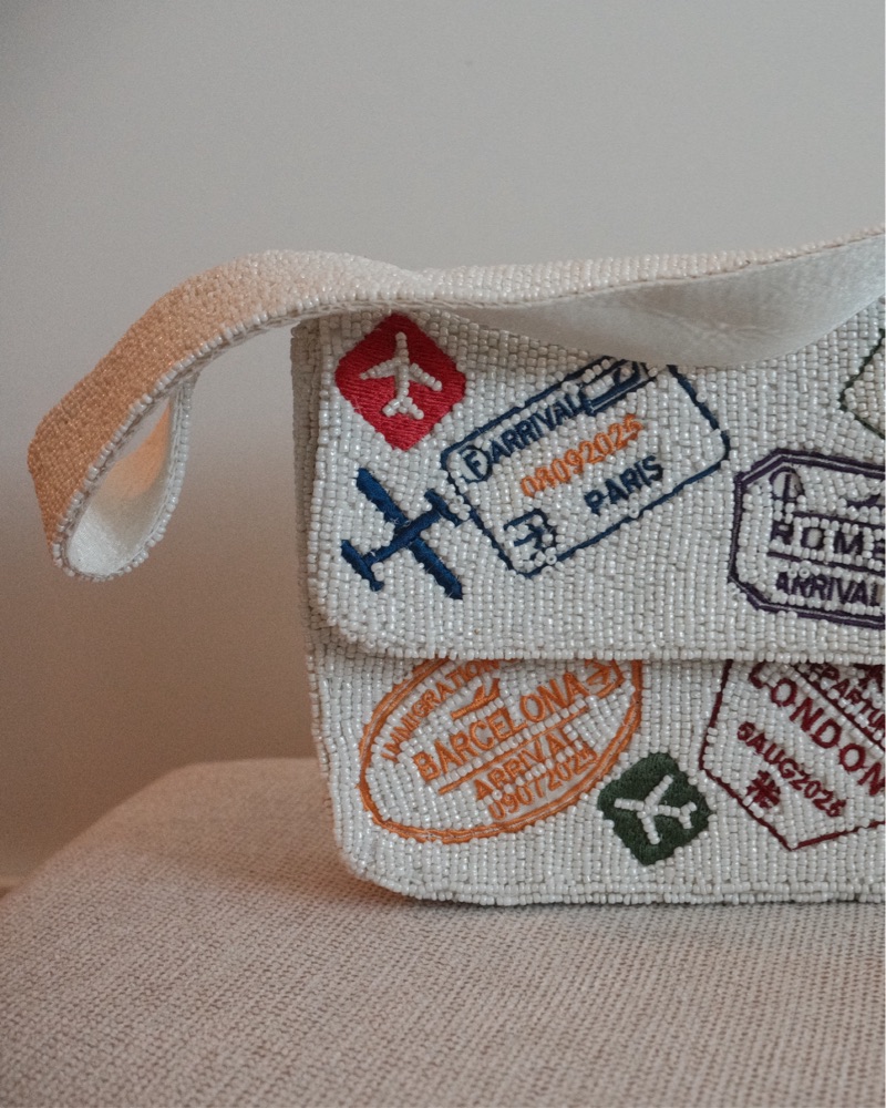 VIRAL Beaded White Travel Stamp Bag