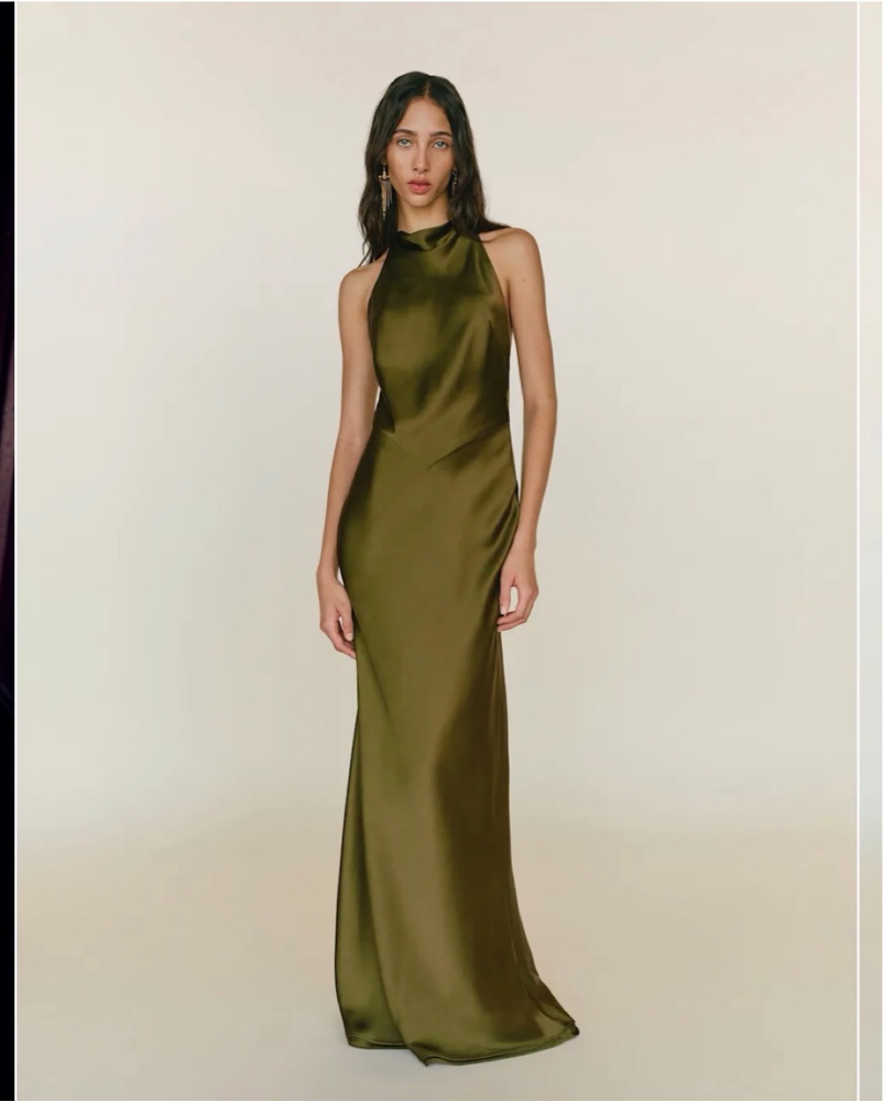 Olive green silk halter backless floor length gown - altered as I’m 5’4! Price includes dry cleaning