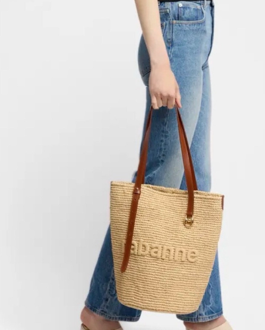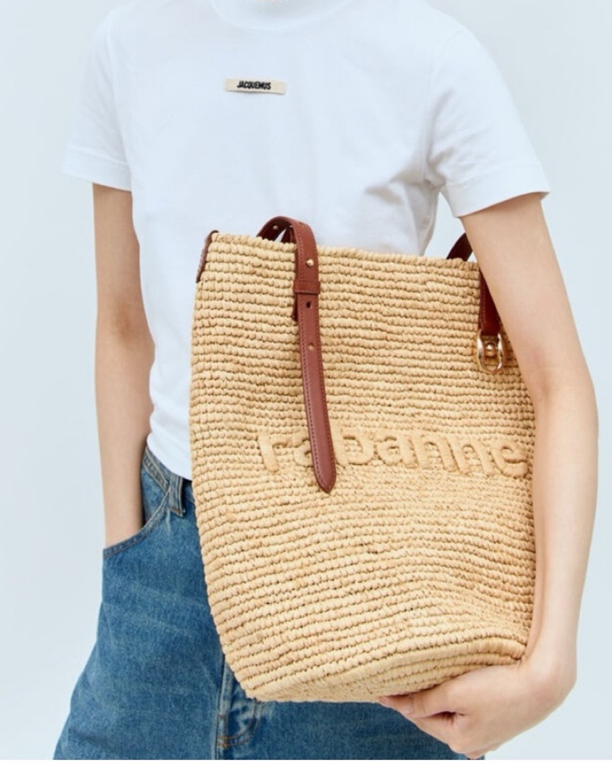 Rabanne beige raffia logo tote bag