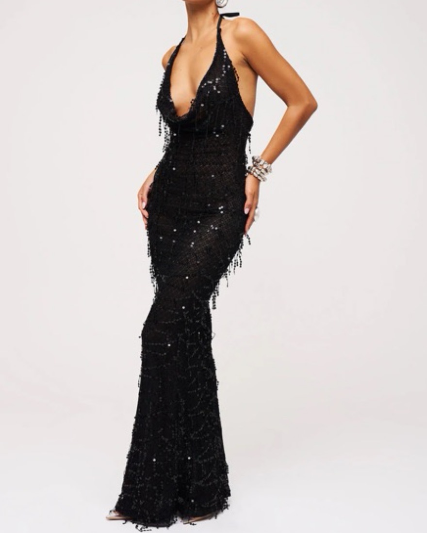 Sparkle and shine in this stunning sequin gown. Perfect for a formal event or red carpet occasion.
