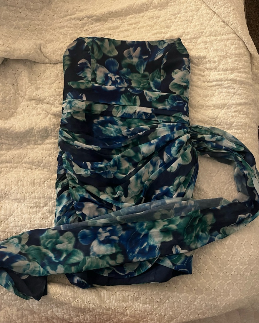 Strapless mini dress from Runaway the Label. Navy blue floral pattern. Only worn once! Size small.