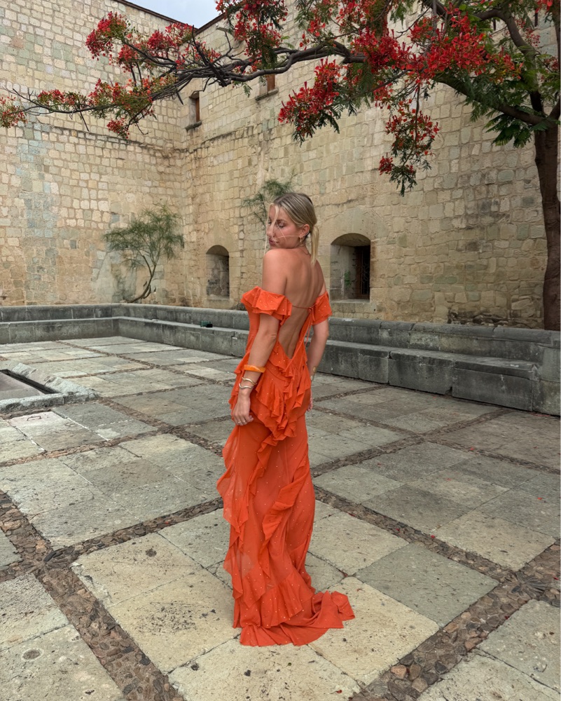 Sold out Helsa Thea Gown, silk, only worn once for a wedding, size Medium but I’m a true size small and fit me great, wanted it to be looser around the stomach than skin tight. Very delicate and stunning.