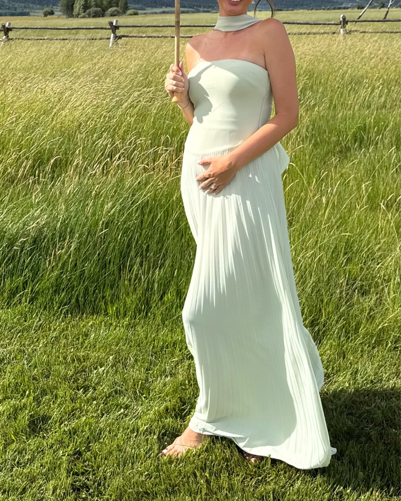 Color = sage. Perfect bridesmaid dress.