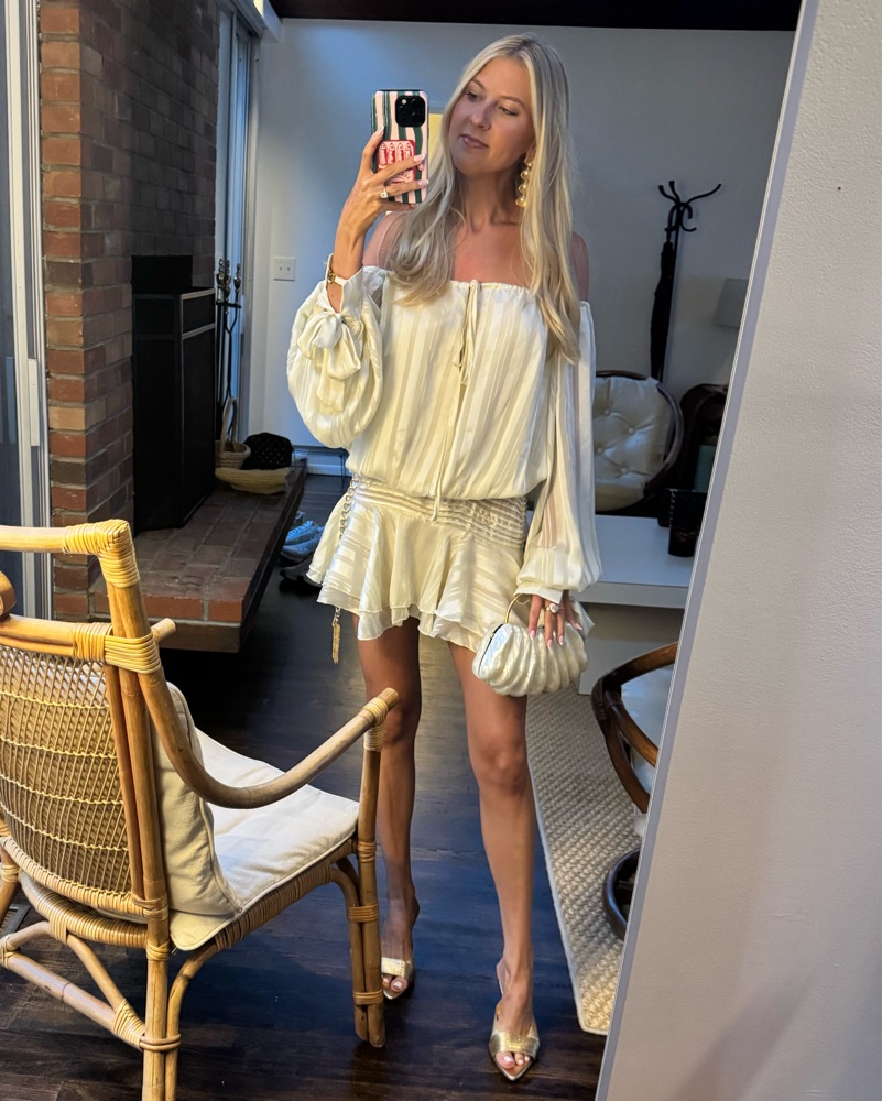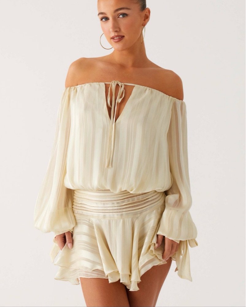 Peppermayo Eira Balloon Sleeve Mini Dress in Ivory. Size 0