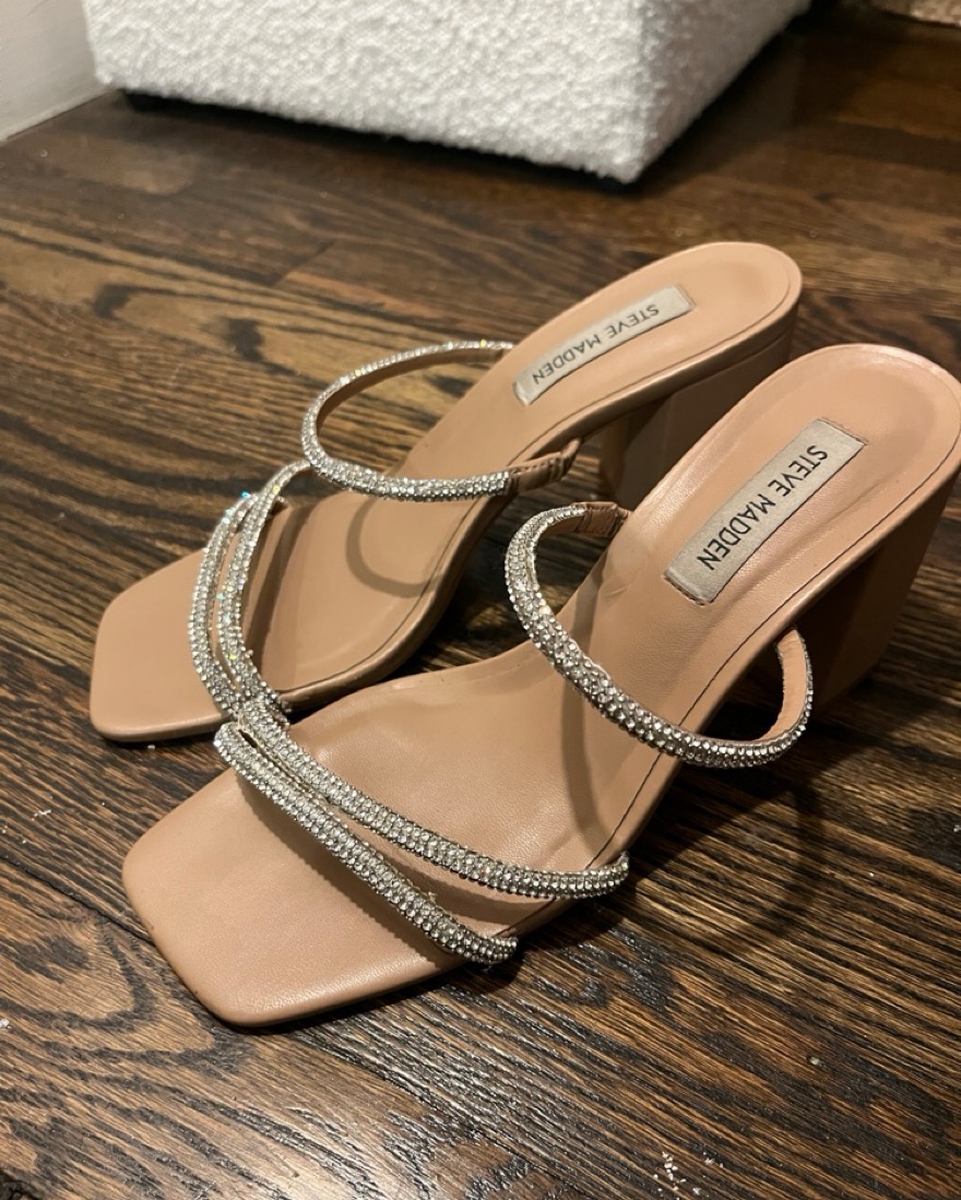 Steve Madden Nude Rhinestone Block Heel