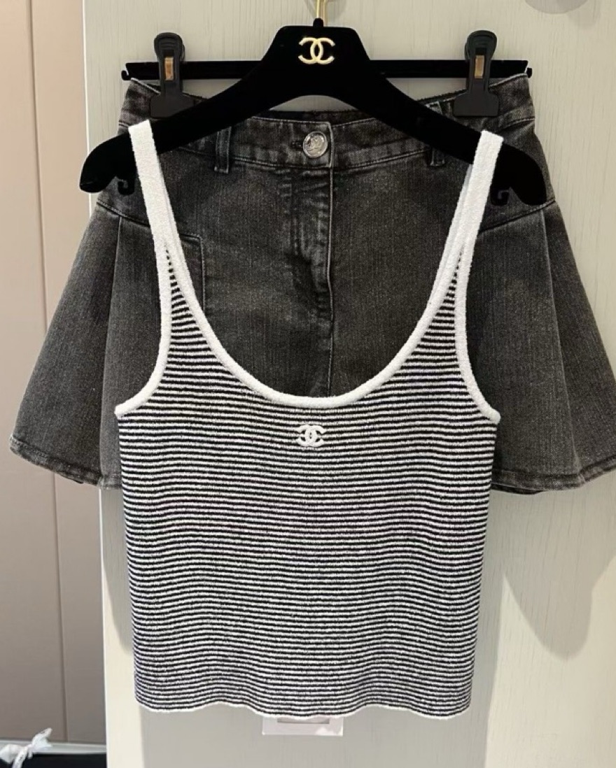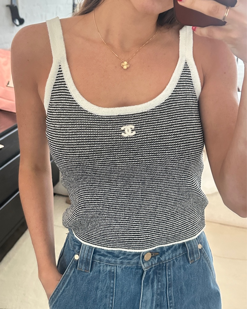Gorgeous black knit Chanel tank! Very similar replica - nice thick material! Perfect summer top or vacation top. Also available in red . Last two photos are of me in it :) I have two available!