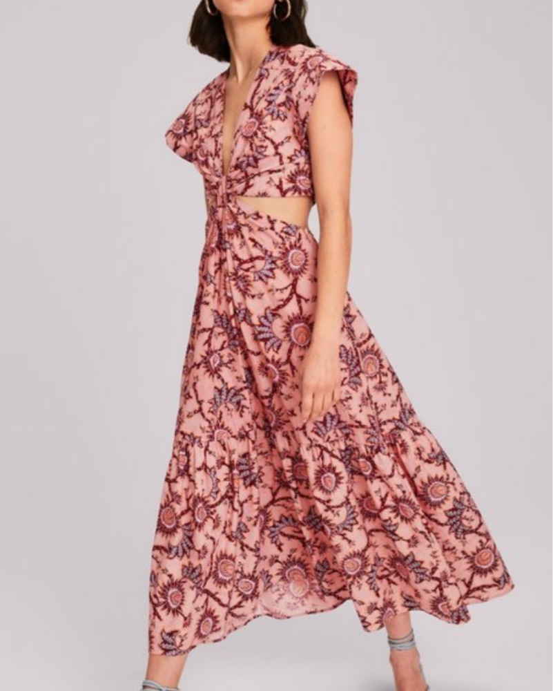 ALC Pink Floral Print Midi Dress