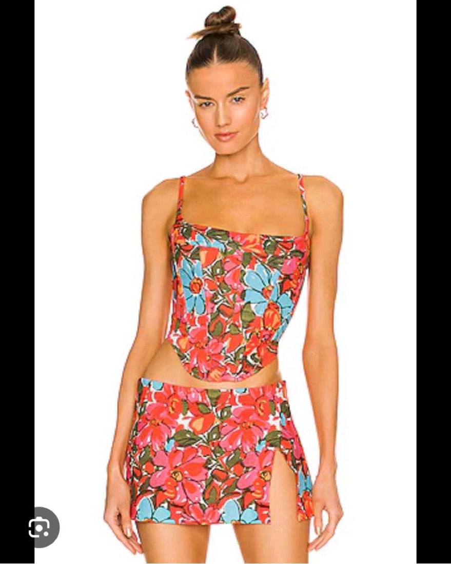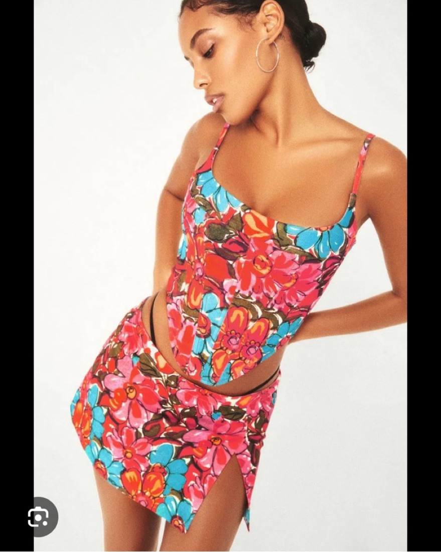 Such a fun set for a night out or a festival! The corset is adjustable with ties in the back.