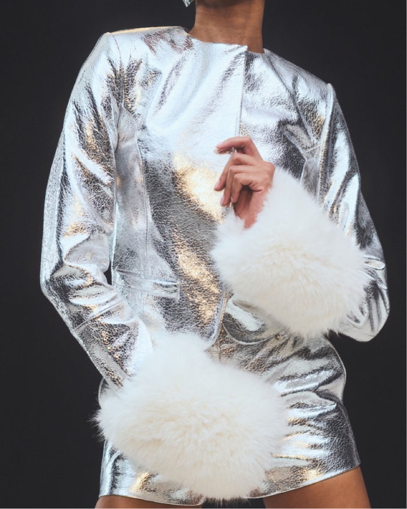 This glamorous metallic jacket is perfect for a night out on the town. The shiny, textured fabric and fluffy white trim create a statement-making look that's sure to turn heads. 100% leather - sold out everywhere!