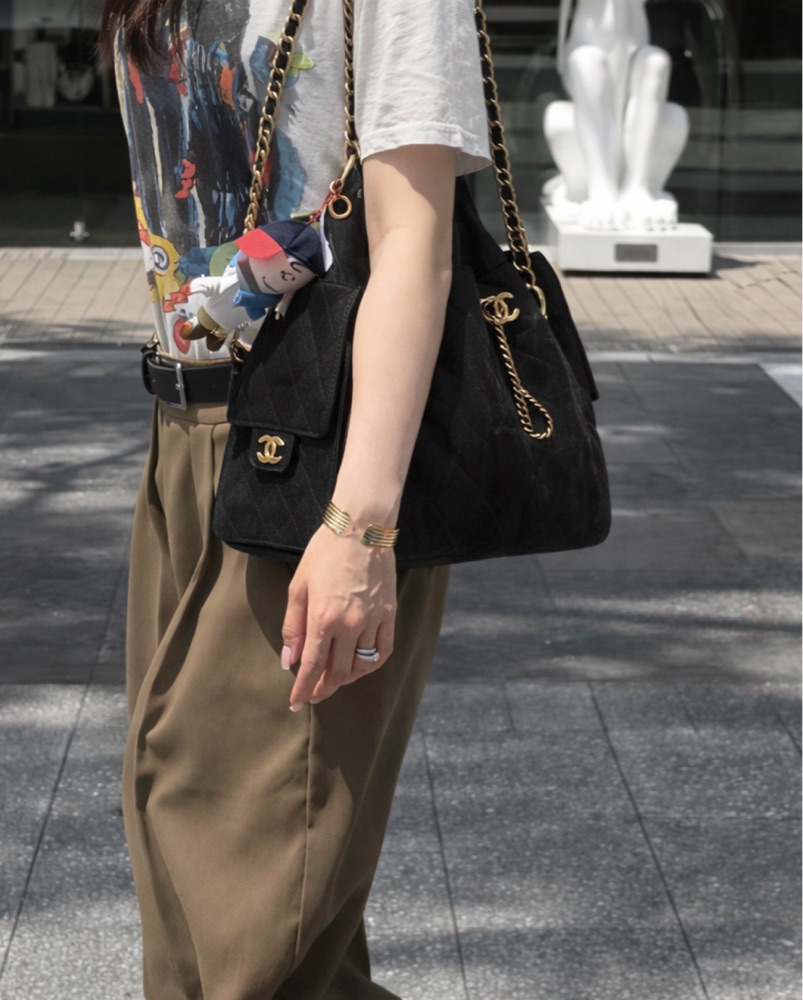 This versatile Chanel hobo bag is perfect for everyday wear or special occasions. Its classic design and high-quality construction make it a timeless accessory. 100% suede. Can’t guarantee authenticity. It’s the small version and it holds a lot!