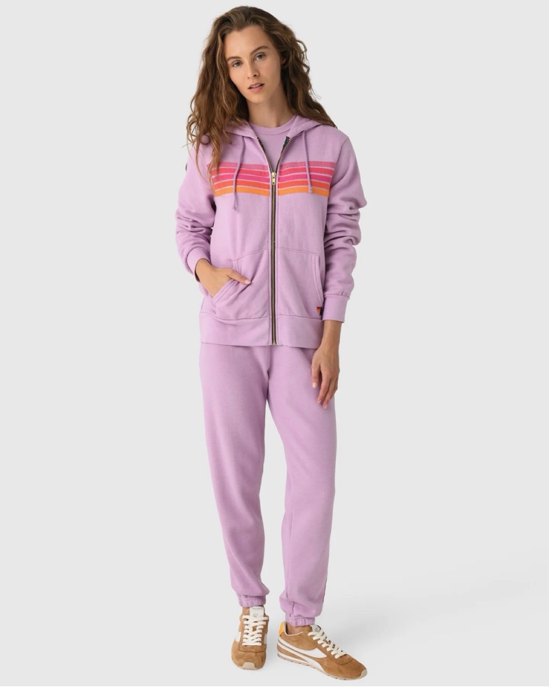 Super comfortable hoodie and jogger set is perfect for a cozy yet stylish day. The vibrant striped pattern adds a fun, retro-inspired touch. Perfect for the plane or to lounge around in. Dm me if you want to rent them separately.