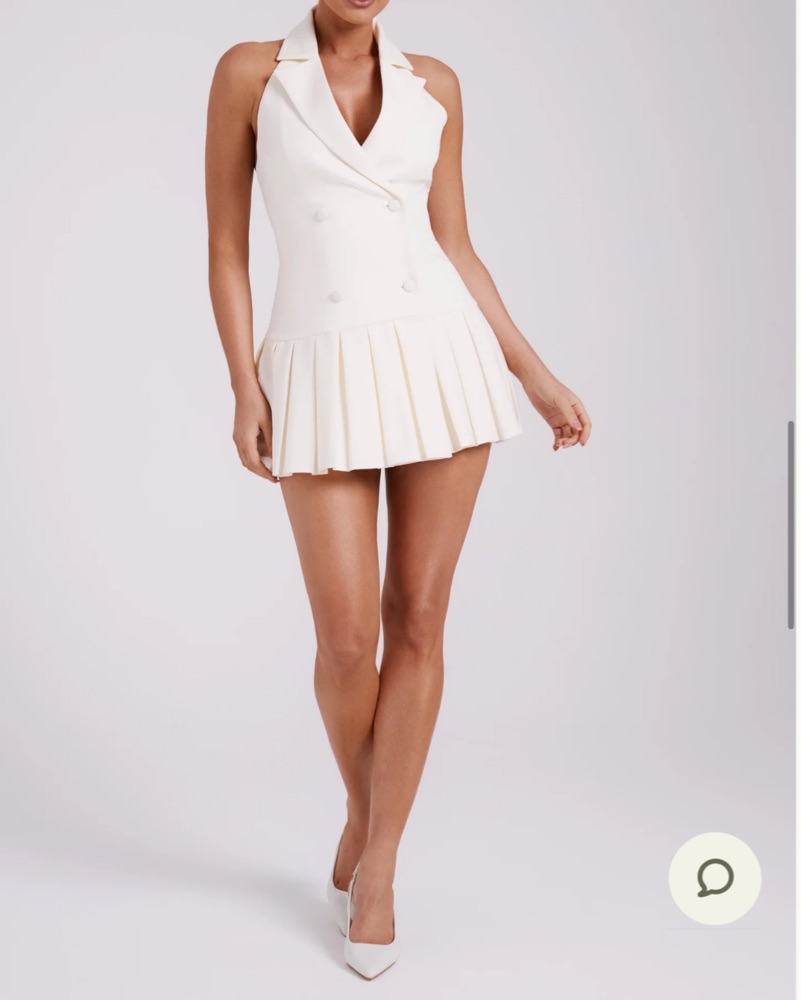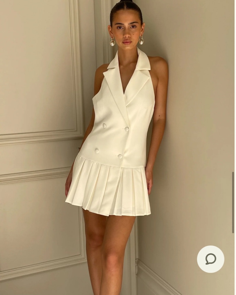 This chic and sophisticated pleated dress is perfect for any formal occasion. The sleek halter neckline and flowy skirt create a flattering silhouette that exudes elegance.