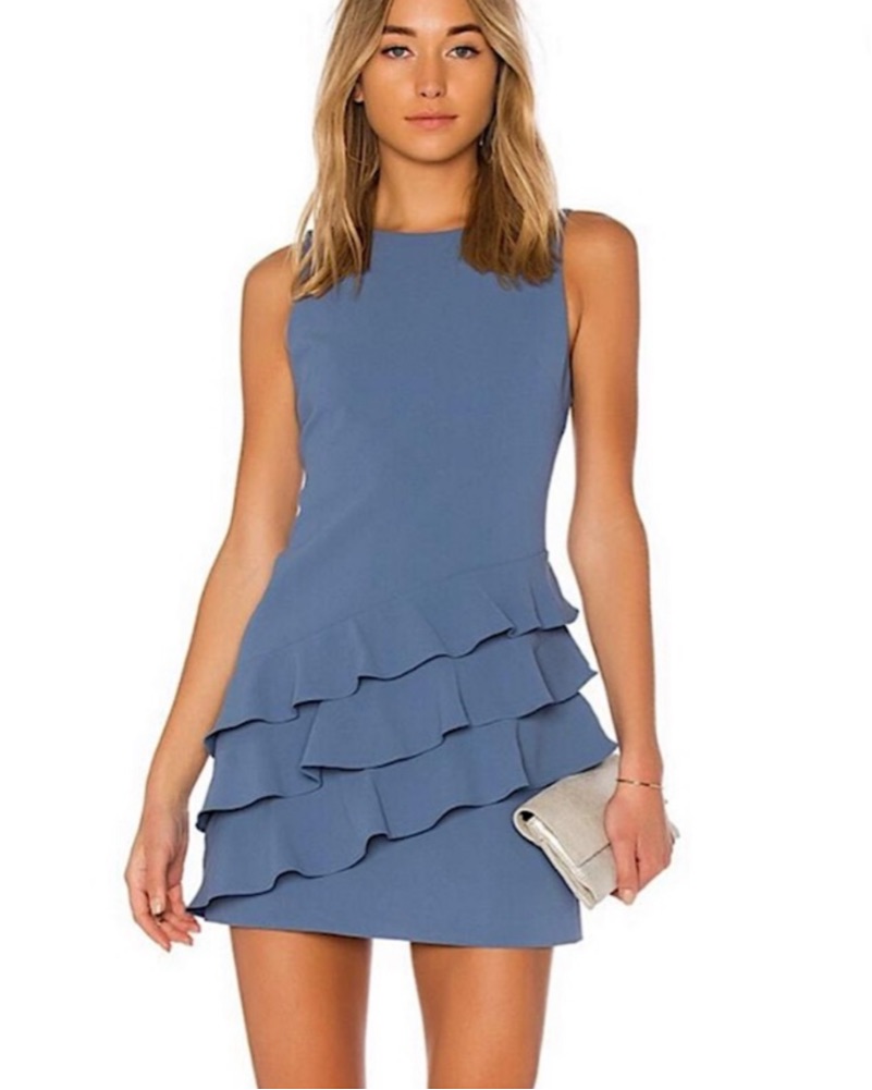 Steel Denim Blue Ruffle Dress by Alice and olivia - Pickle