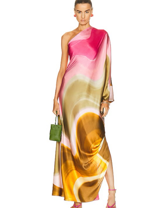 Satin One-Shoulder Maxi Dress by Silvia Tcherassi - Pickle