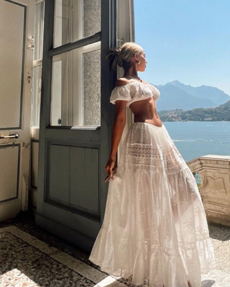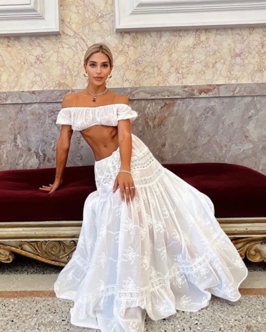 Adeirlina White Lace Crop Top Maxi Skirt