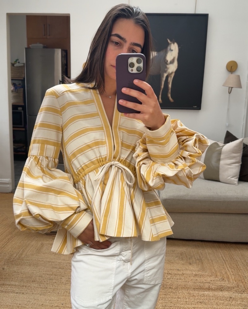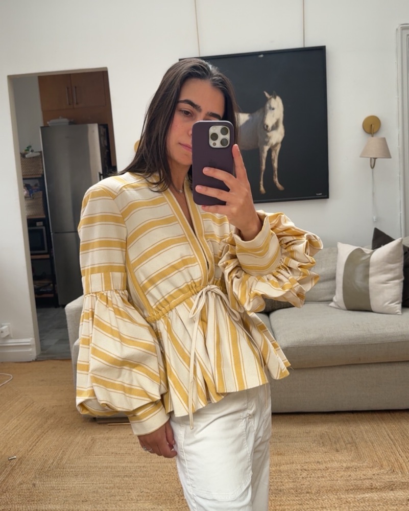 Beautiful Rosie Assoulin top! Love wearing this in the spring or a cooler summer night. The thick fabric makes it a very good transitional piece!