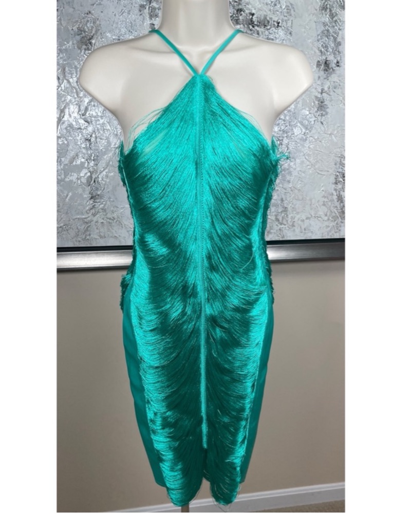 Incredibly stunning dress by Cult Gaia. Very delicate and beautiful. The fringe is silky and shiny turquoise color. Size XS fits 0-2. Very good condition.