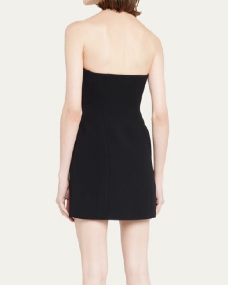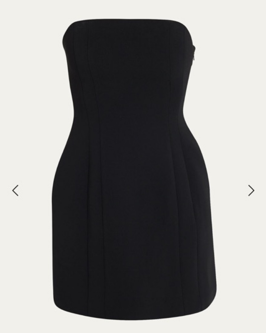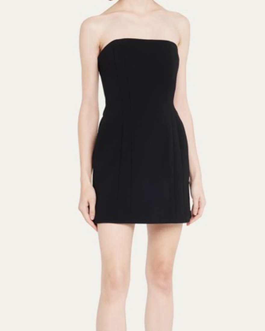 Elsie Strapless Mini Dress in black. s featuring seamed details to accentuate the figure. Sleeveless, Side slip pockets, Sheath silhouette, Hem falls above the knee, Side zipper. Perfect black mini with heels or boots and a blazer
