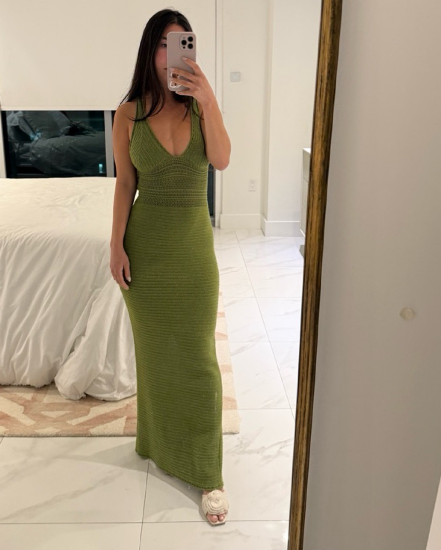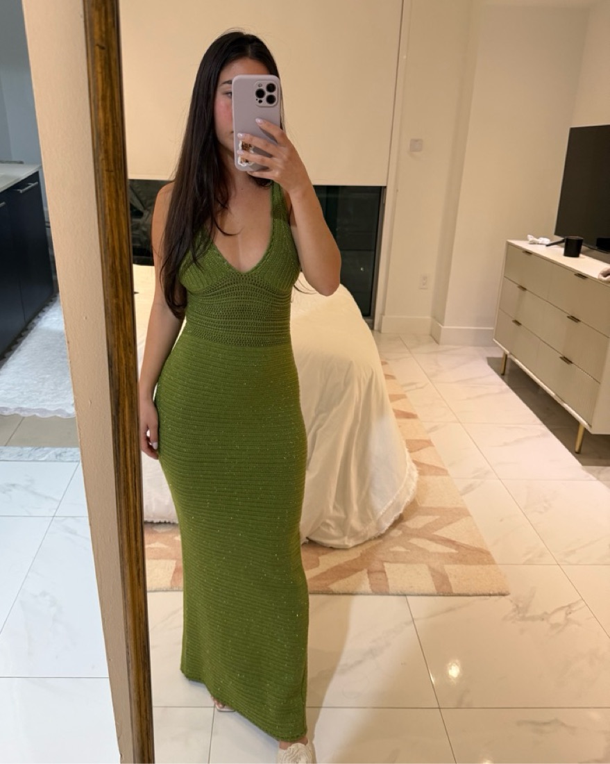 Green Sparkle Crochet Dress by Torn By Ronny Kobo - Pickle