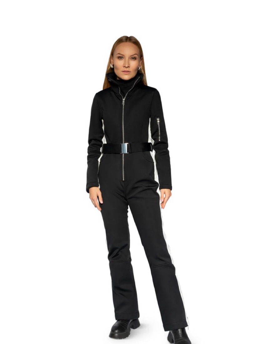 It's giving Bond girl. Our best-selling BLACK SKI SUIT - for the minimalist who's doing the most. Keep warm while looking hot in our slim-fit women's black ski suit. - Fleece-lined and double insulated to keep you warm in those cold mountain temps (no coat necessary, base layers recommended)