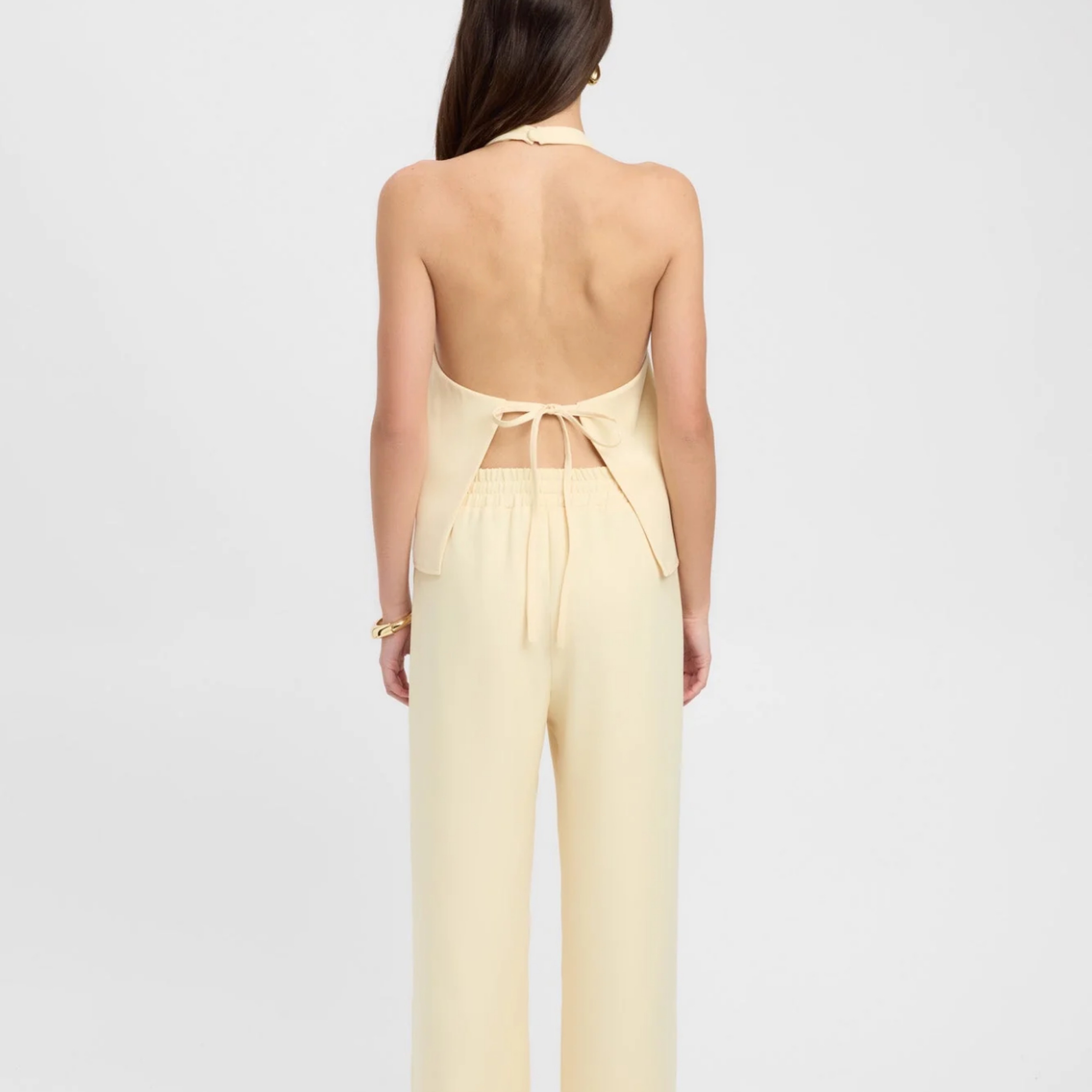 High neck line open back top and wide leg pant. Size 34 top and bottom (would fit xs/s). Pants have elastic band and are stretchy