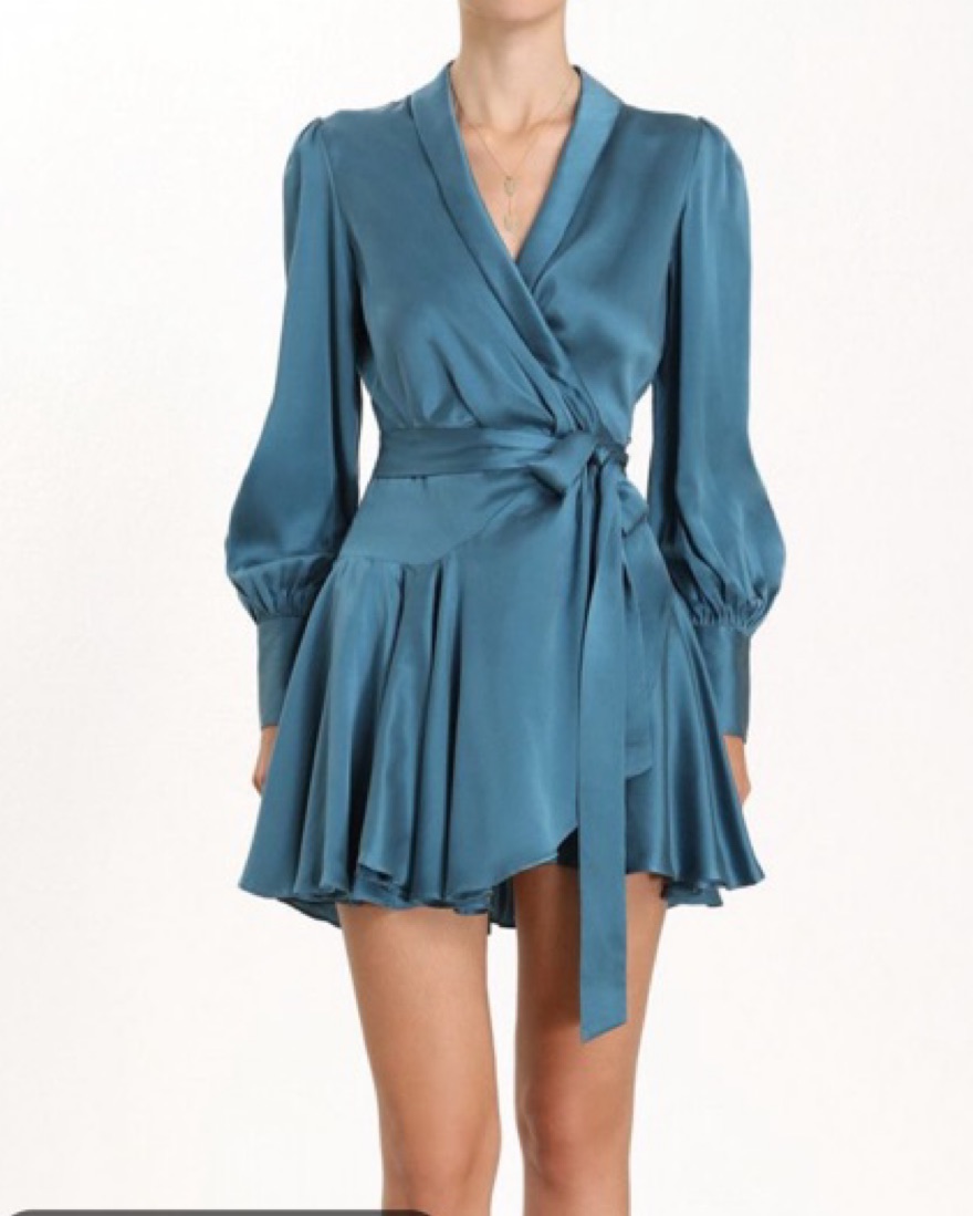 ZIMMERMANN Blue Silk Wrap Mini Dress