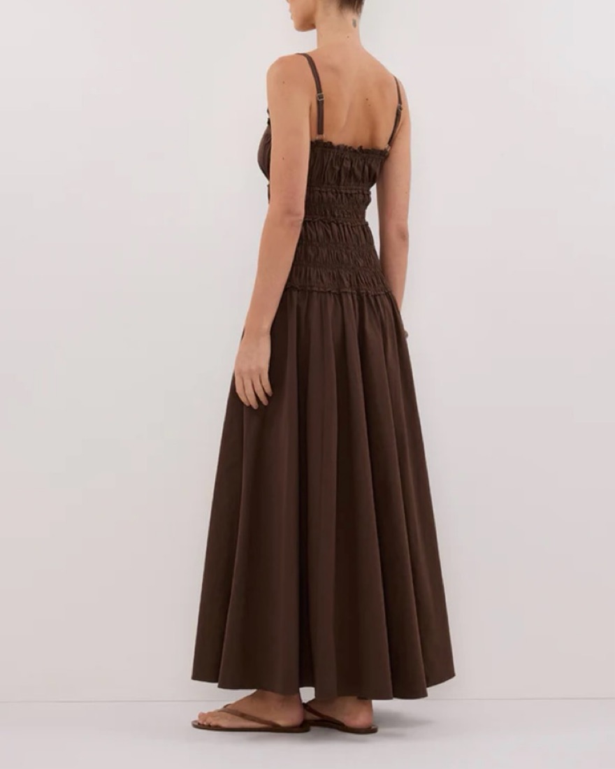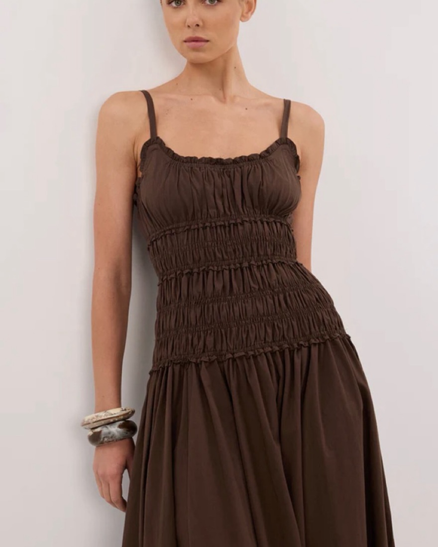Literally one of my favorite dresses I’ve ever bought! It’s so flattering and the color is gorgeous. Sleeveless cotton midi dress, Wide scoop neckline featuring ruffle details, Tiered elasticated gathering featuring easy fitting shirring through body, Flat adjustable straps, Split at side seam.