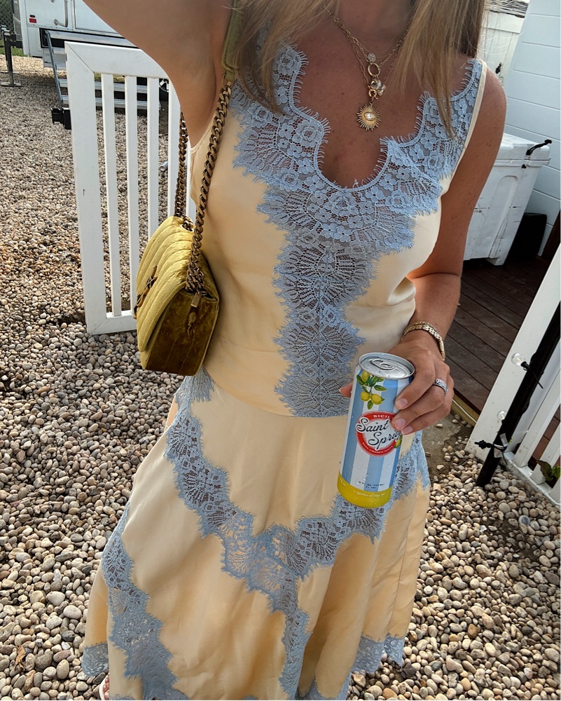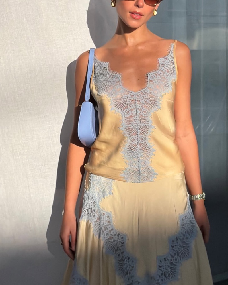by Marianna Lay Midi Skirt AND tank in Beige & Blue