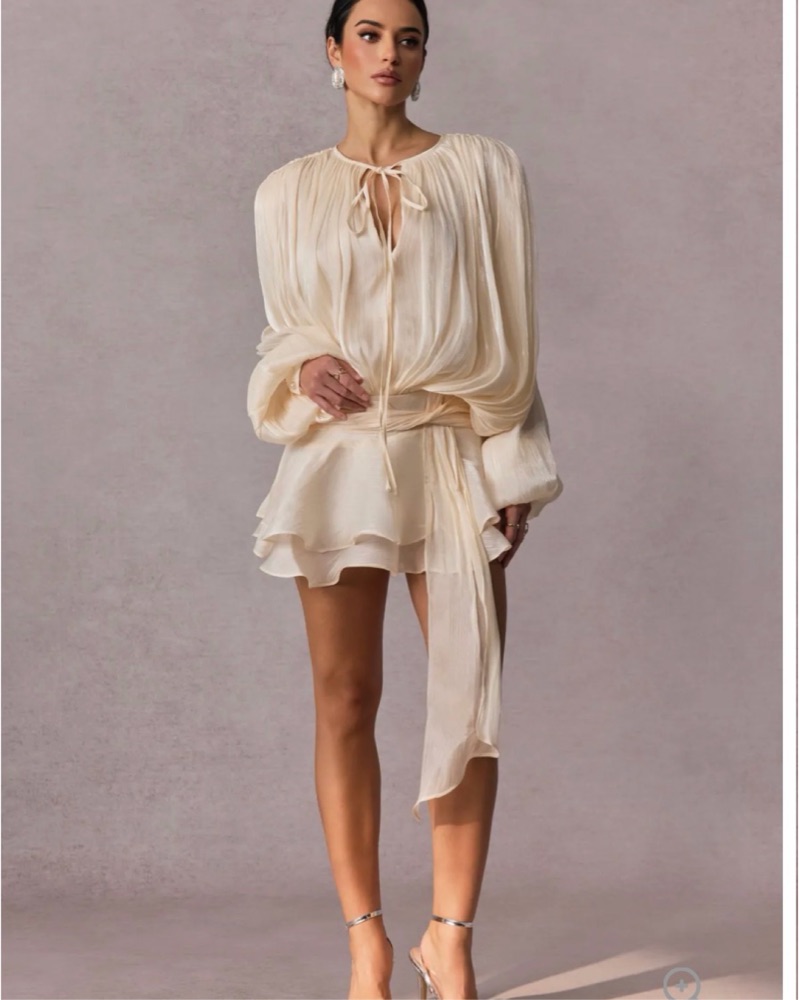 This luxurious chiffon dress exudes effortless elegance, perfect for a romantic night out or special event. Comes with shorts to wear underneath!
