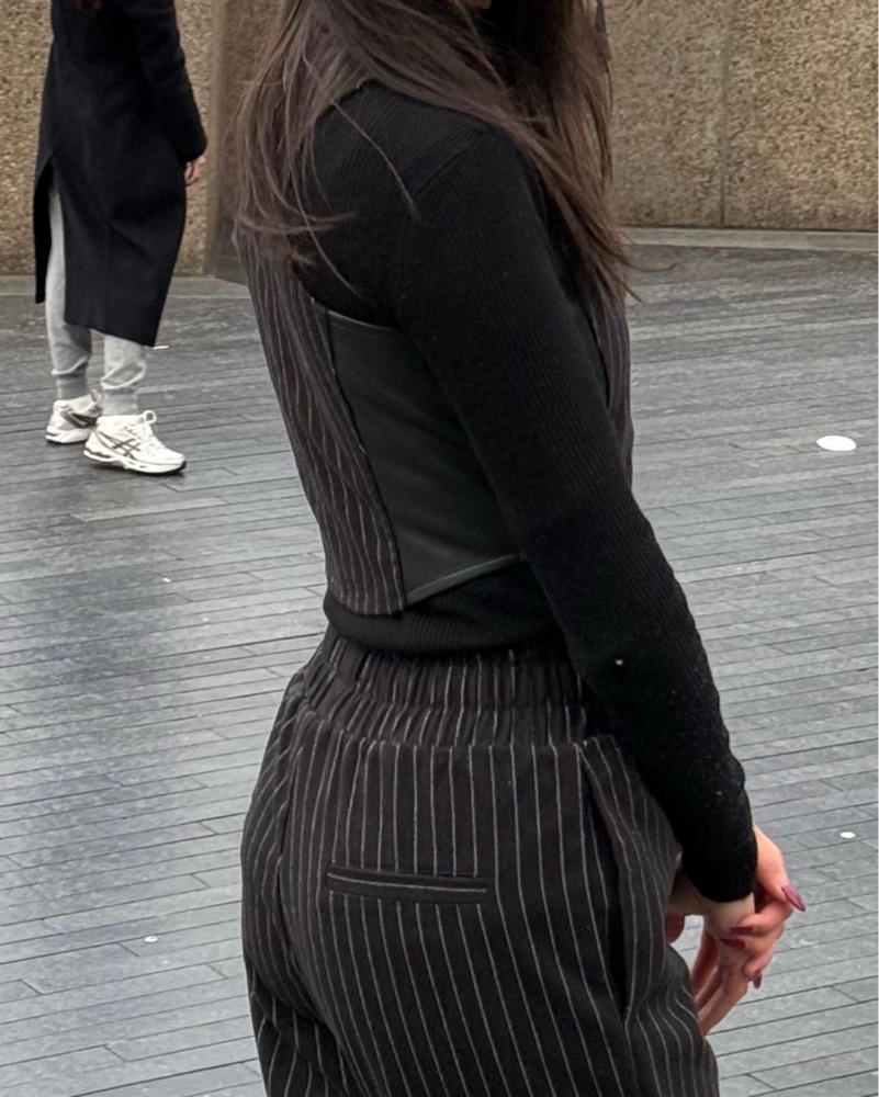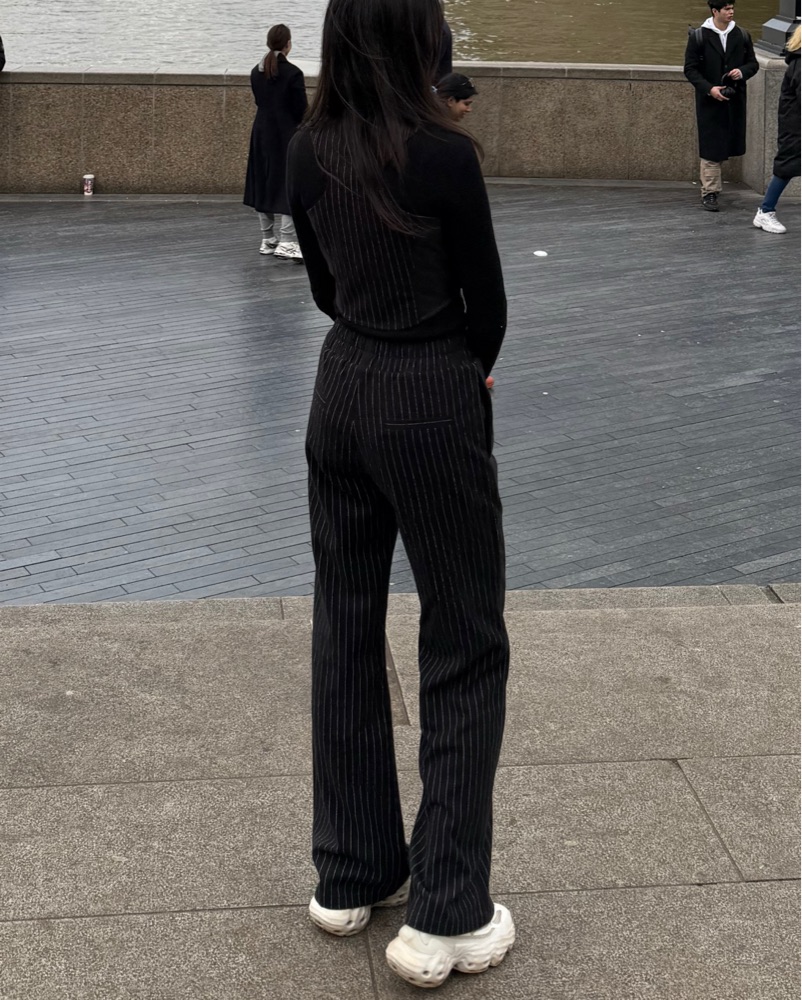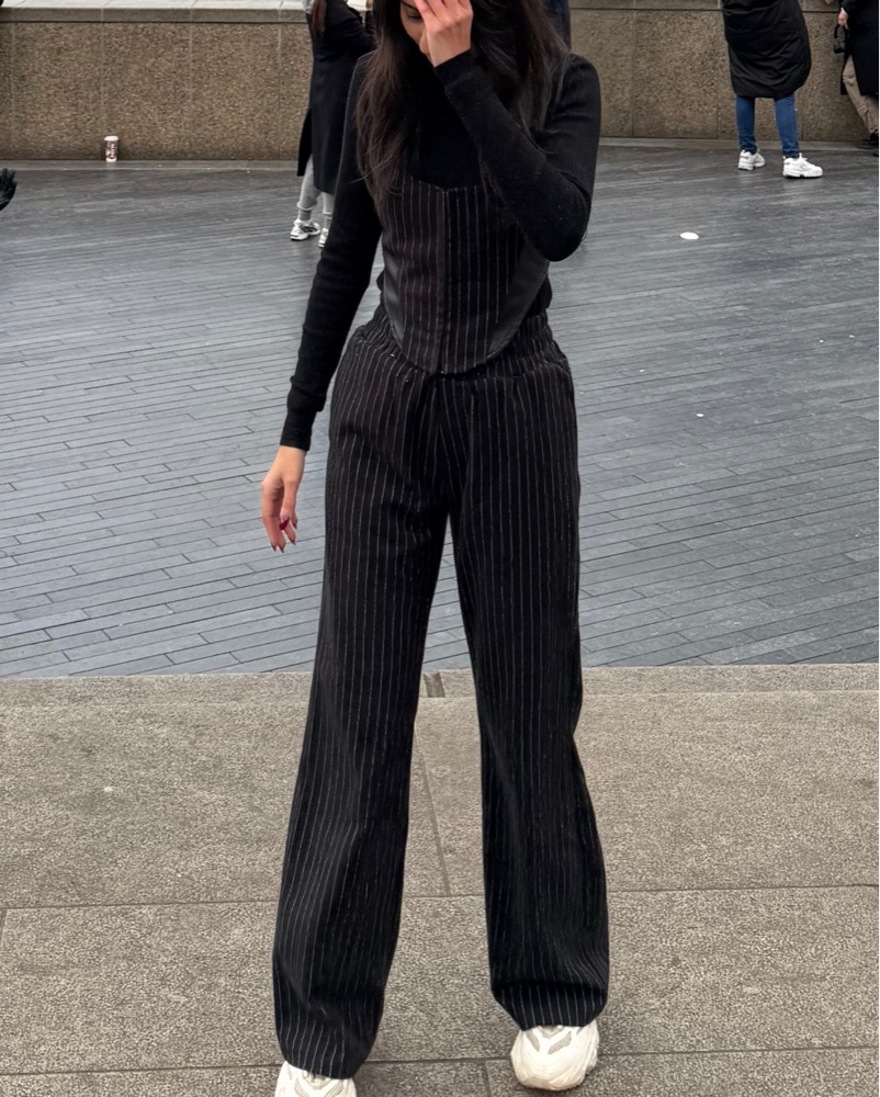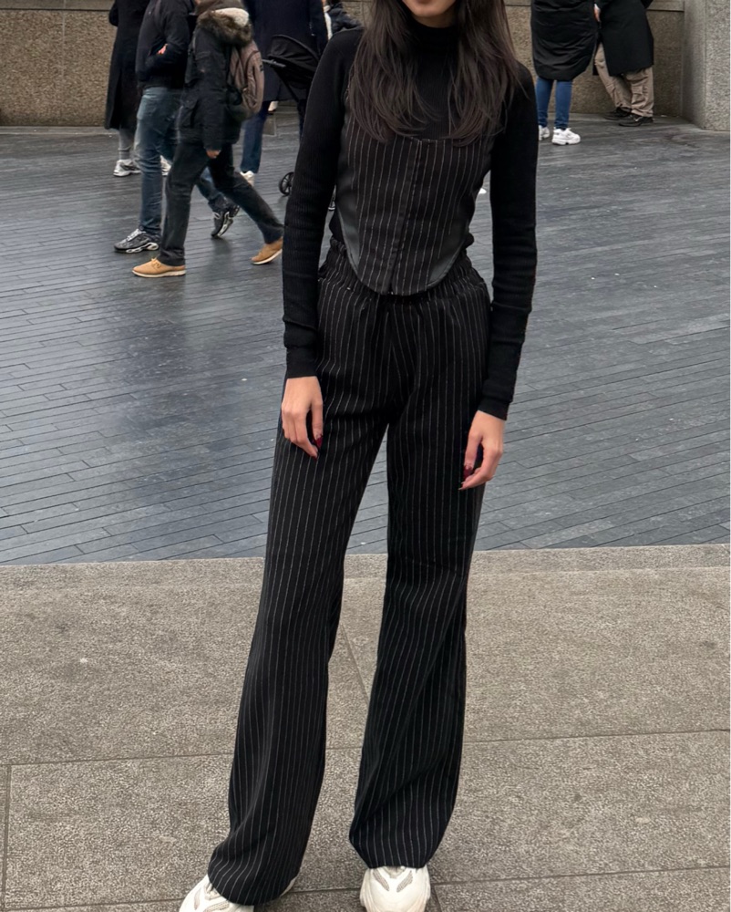 Does not come with the black polo neck inside. You can wear a tshirt beneath or a polo like I did, or you can wear it as it is.This sleek and sophisticated pinstriped jumpsuit is perfect for a night out or a formal event. Fits XXS and XS. Open to offers.