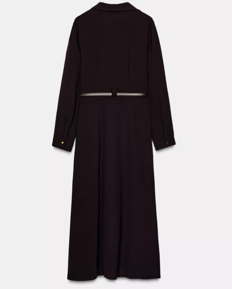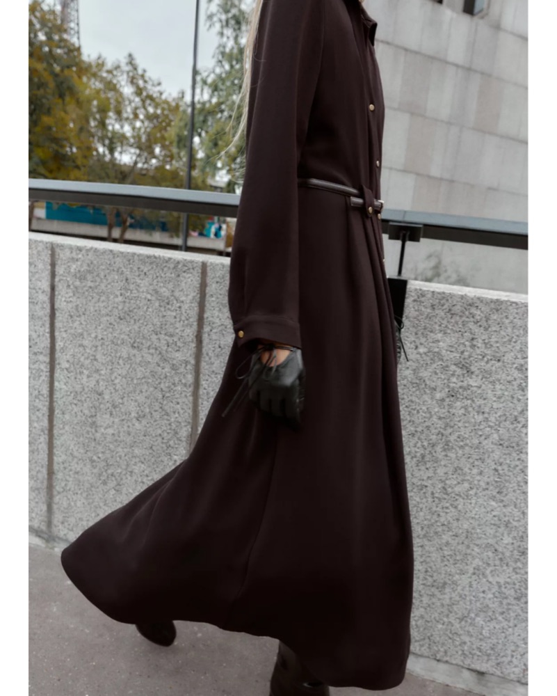 Chic belted midi/long dress perfect for work or holidays, chocolate brown color