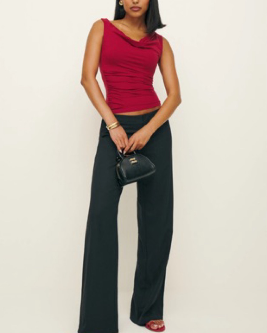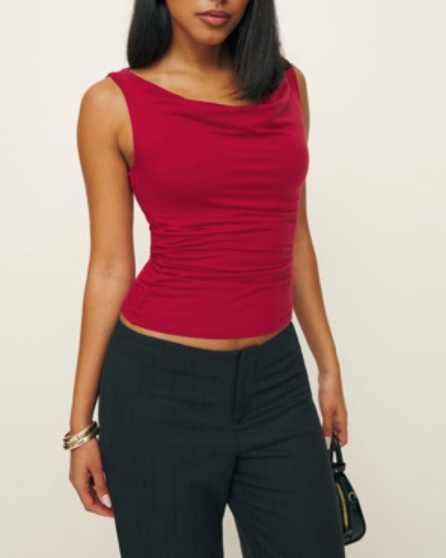 Reformation burgundy/red semi-cowl neck top. Fitted, but stretchy and comfortable. New, perfect condition.