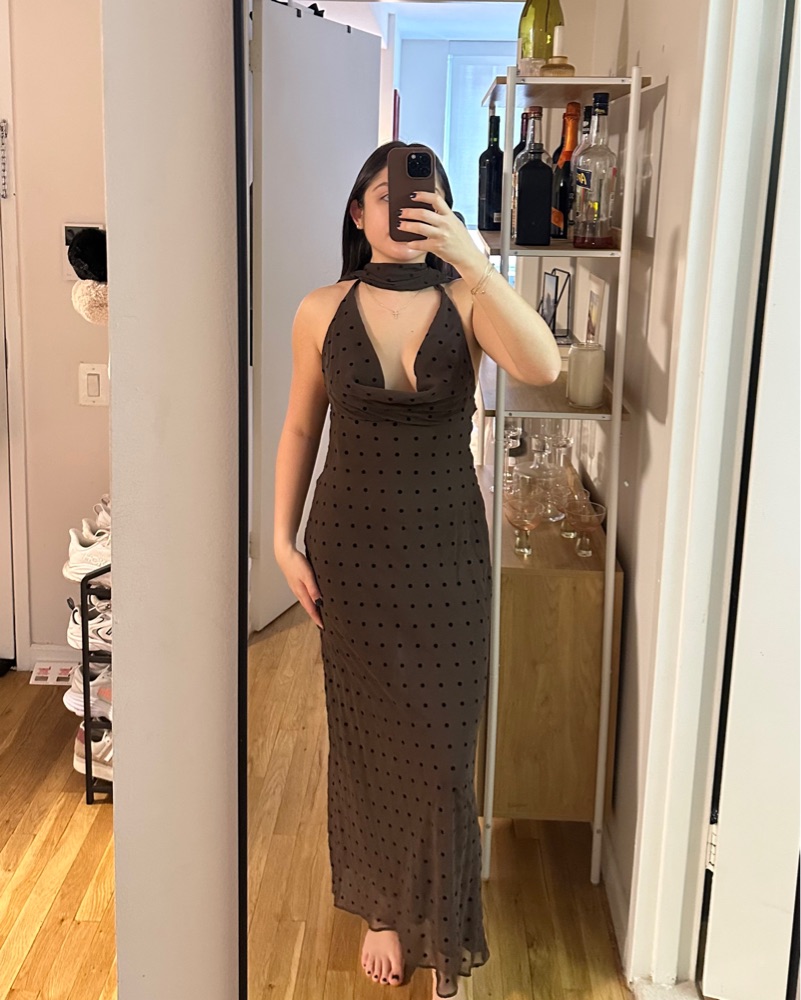 Polka Dot Scarf Maxi Dress by Zara - Pickle