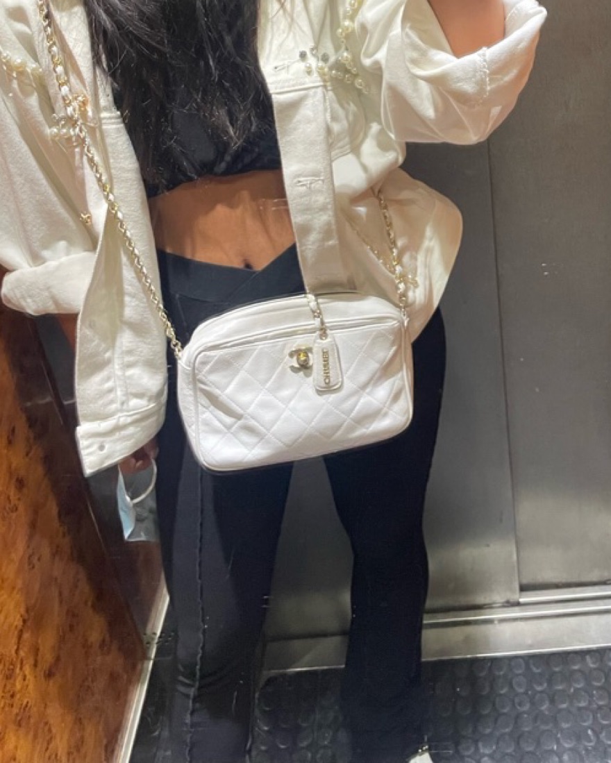White Vintage Chanel Caviar Camera Bag