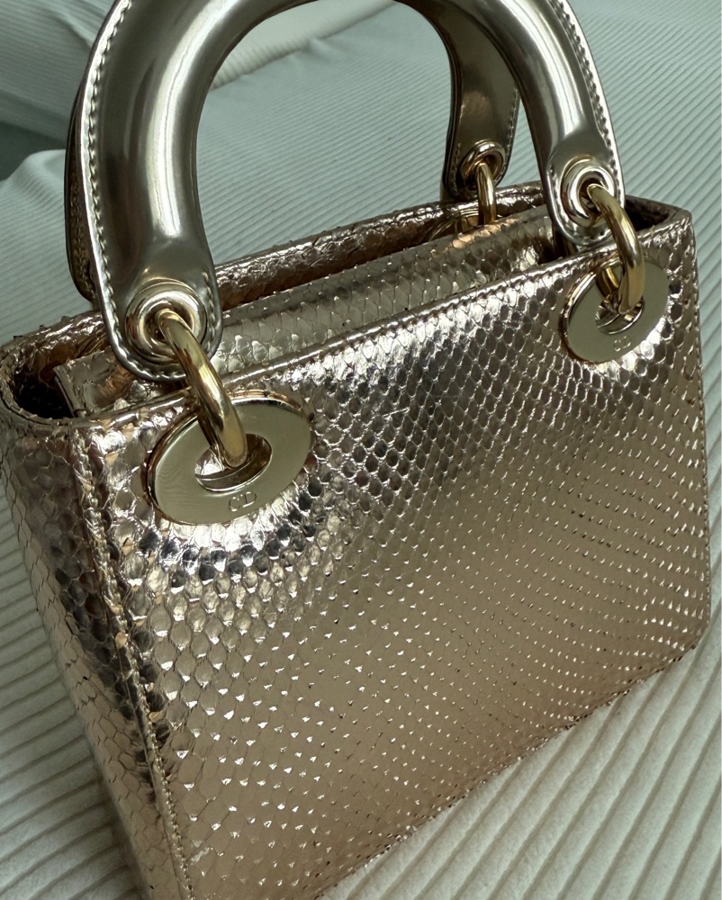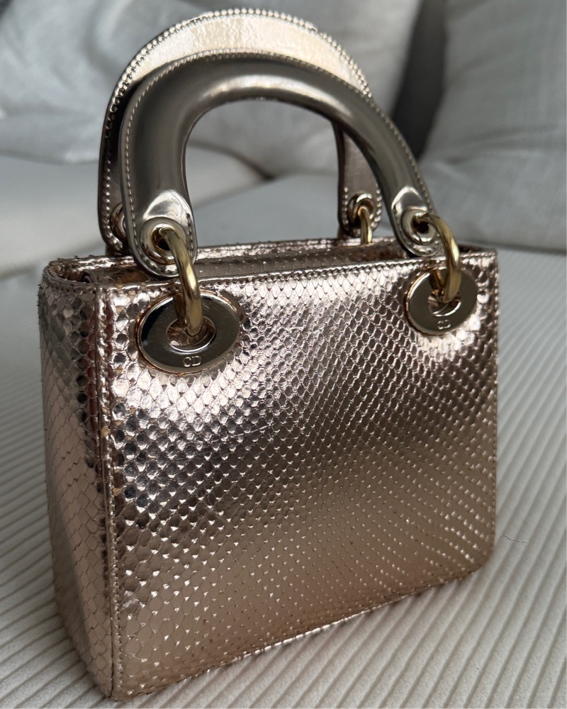 Gold Small Python Lady Dior Handbag