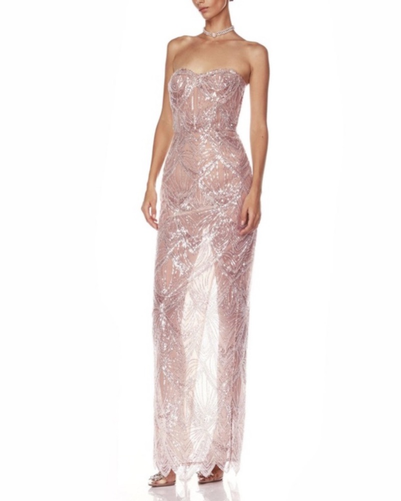 Stunning and beautiful Bronx and Banco blush pink Giselle maxi dress in size Small fits 2-4. This dress is a show stopper in excellent condition.