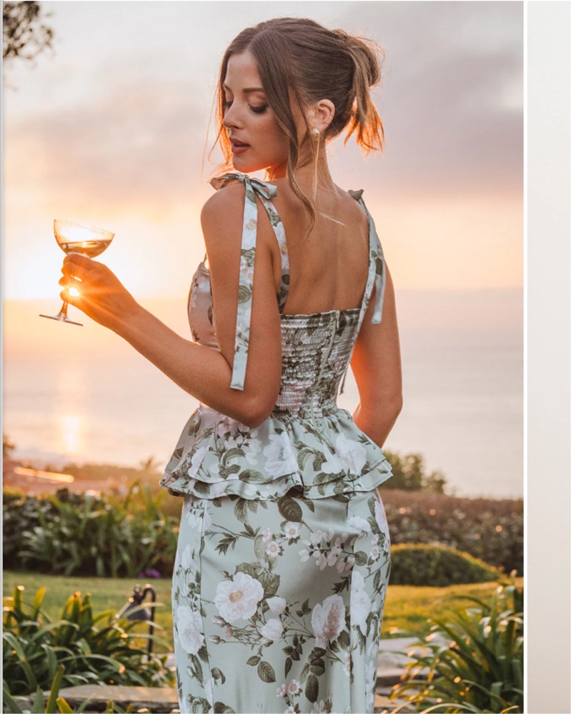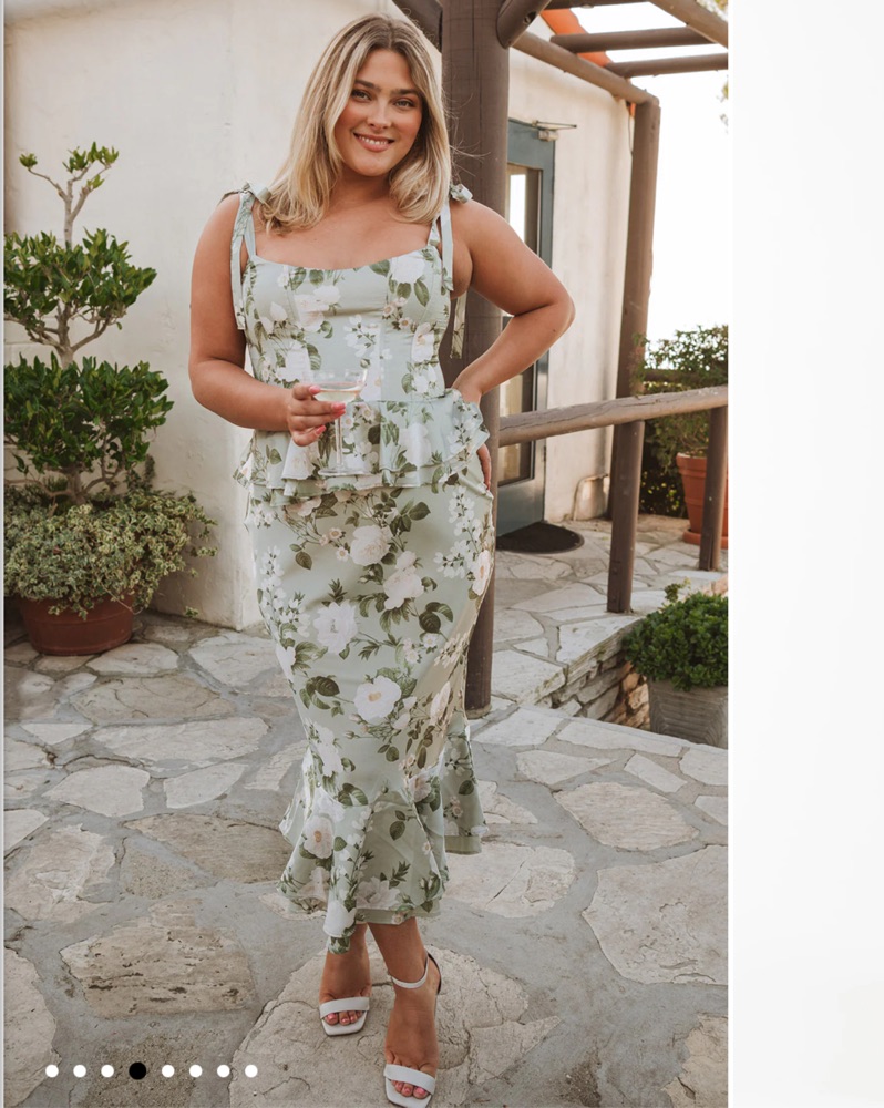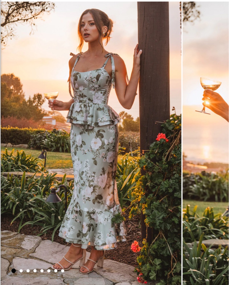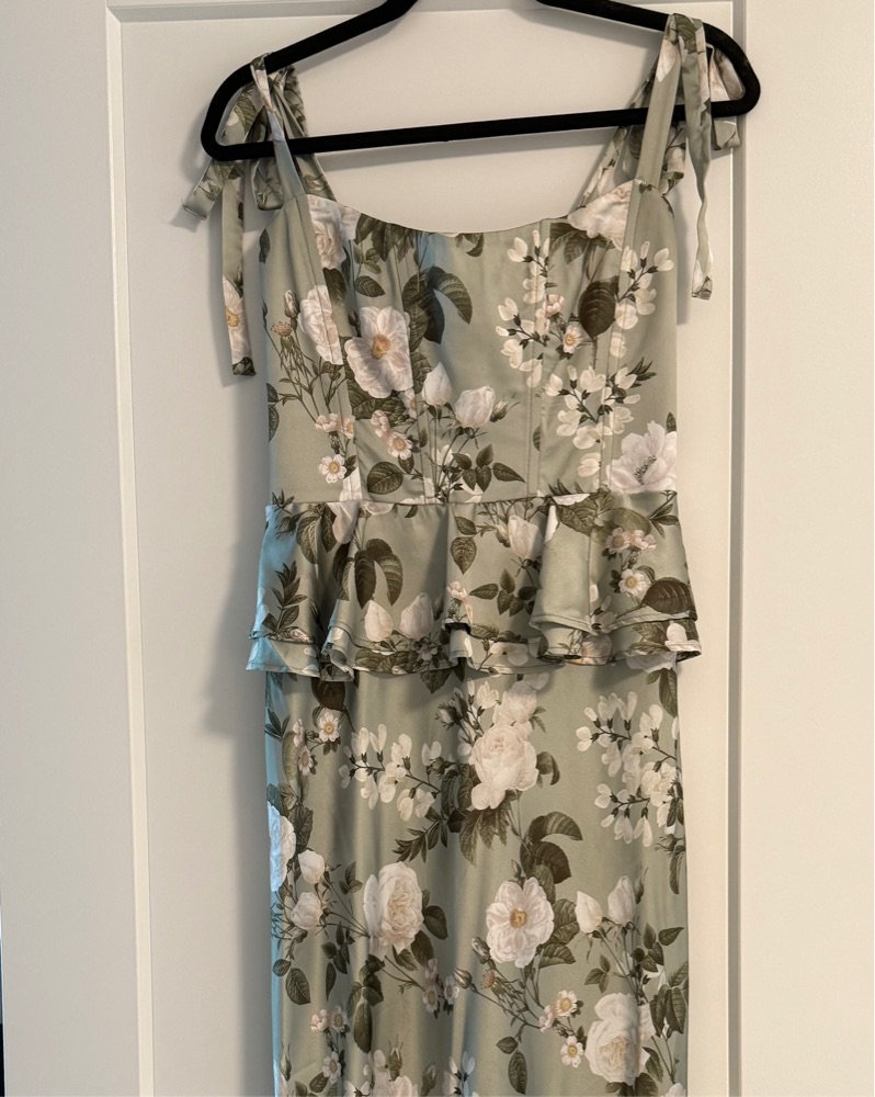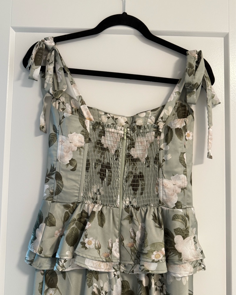 The Pauline Peplum Dress is the perfect blend of chic and playful. Featuring tie shoulder straps, a boned bodice, and a flattering peplum waist, it’s finished off with a ruffled hem for a feminine touch. Effortlessly sophisticated and so dreamy! Size Medium- worn only once!