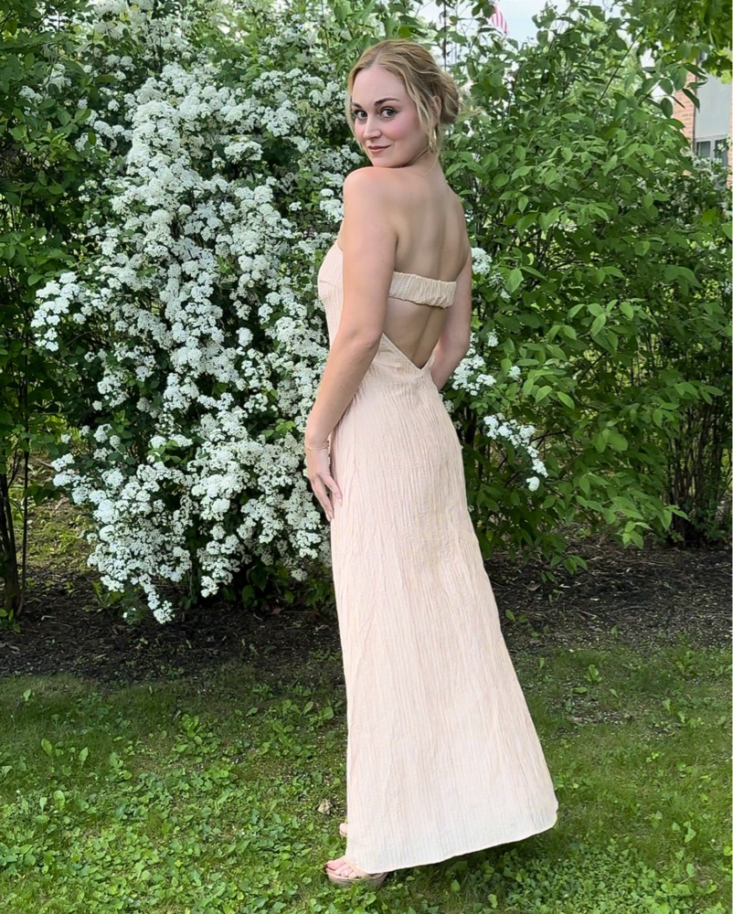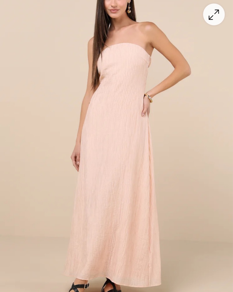 Pink/peach strapless dress with open back. Floor length dress perfect for wedding, dinner, summer gala, or vacation! Only worn once.