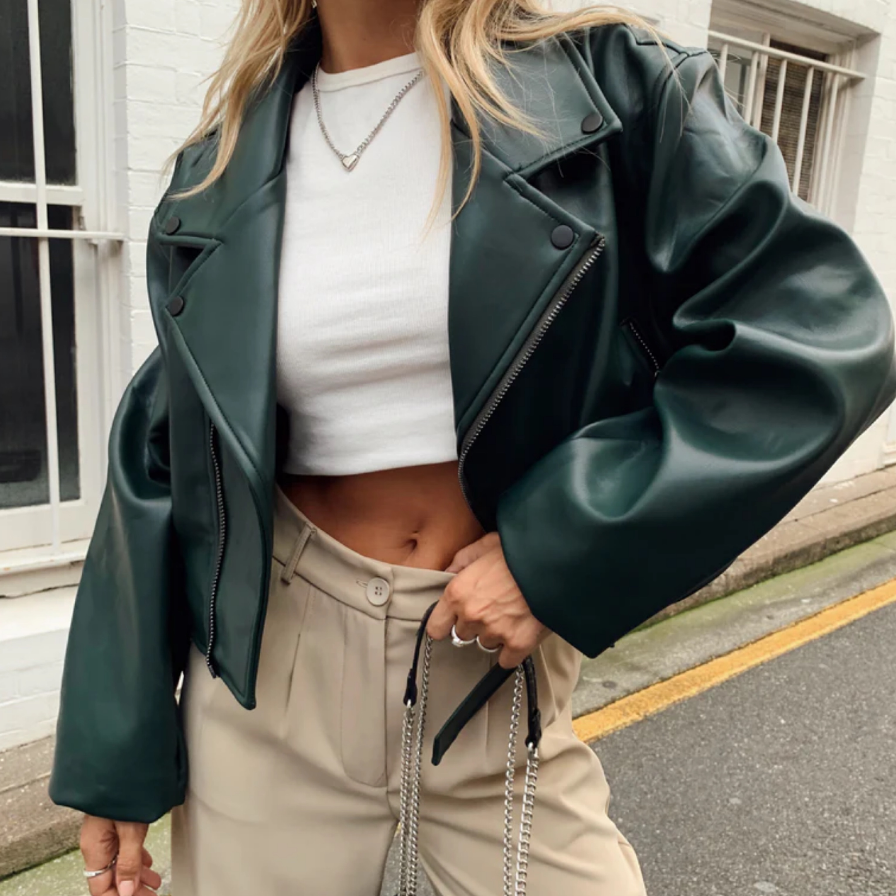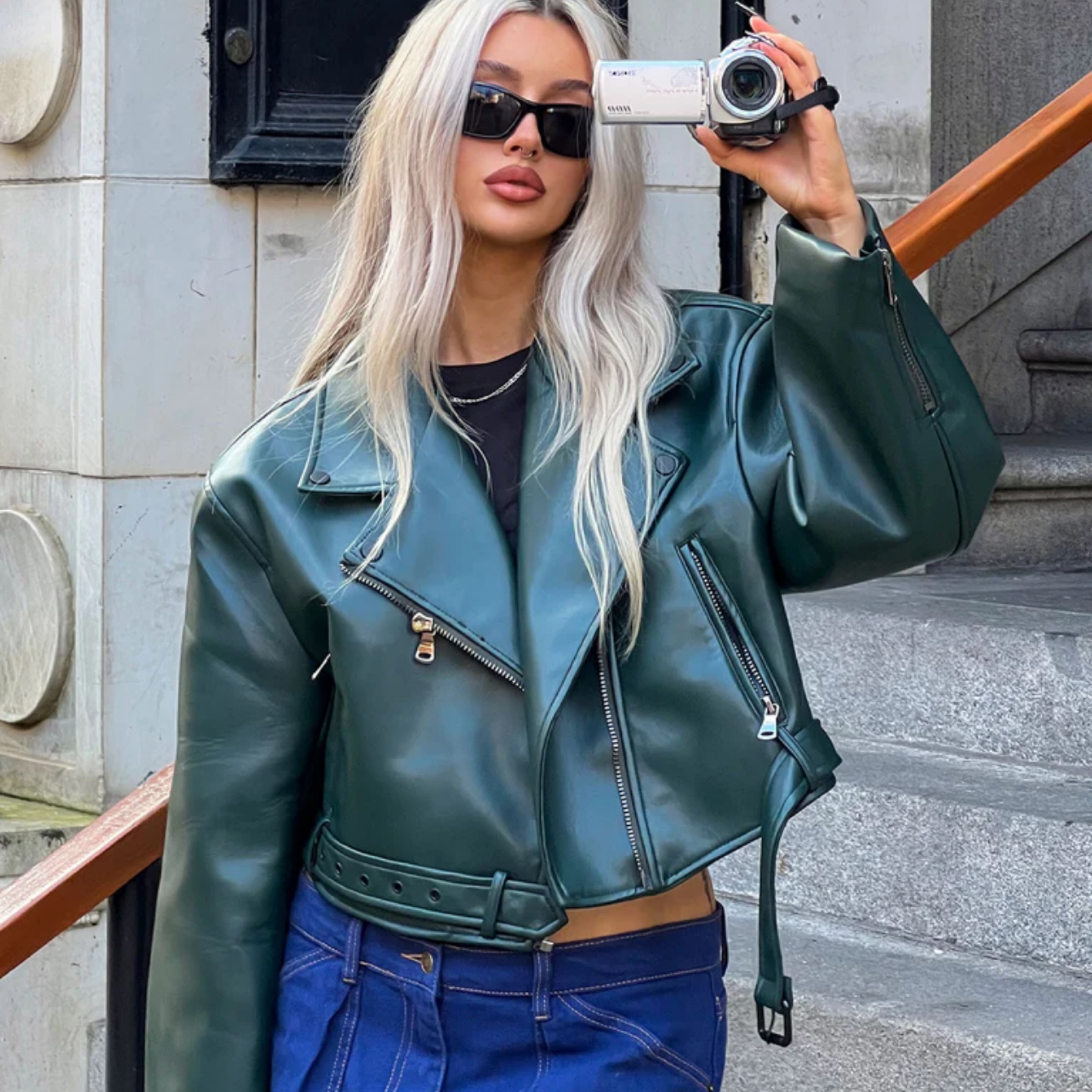 Green leather jacket! Boxy oversized fit - tag says XXS but i notmally wear S/M so this sefinitely fits larger!