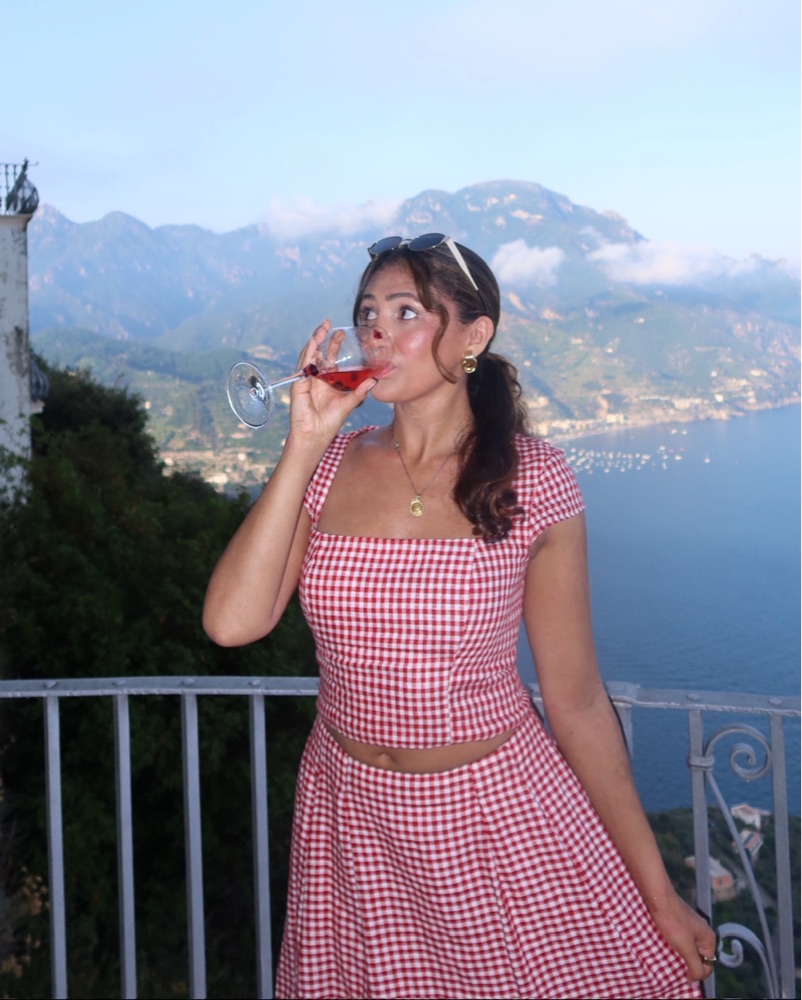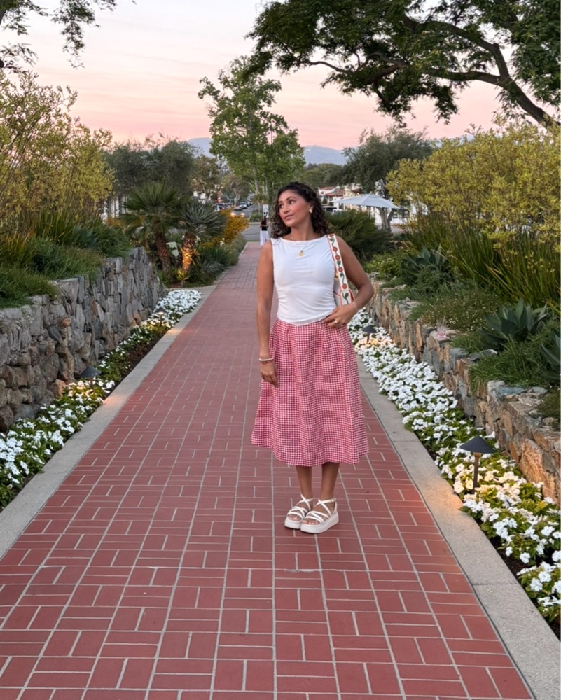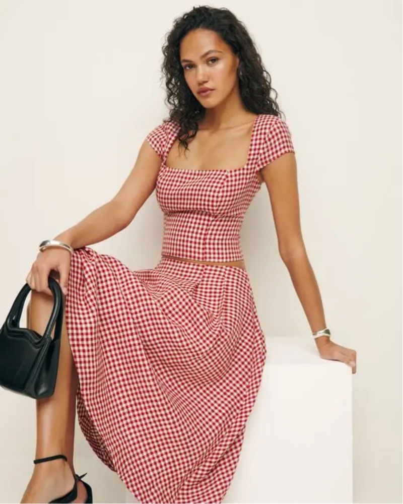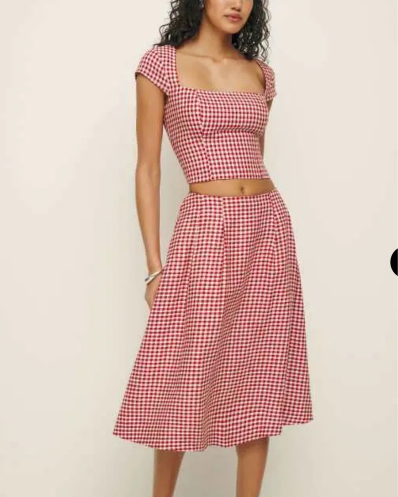 Reformation Savannah Linen Two Piece Set - Tomato Check. Fits size 4-6.