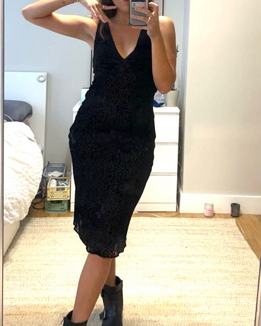 Lined dress, velvet butterfly pattern