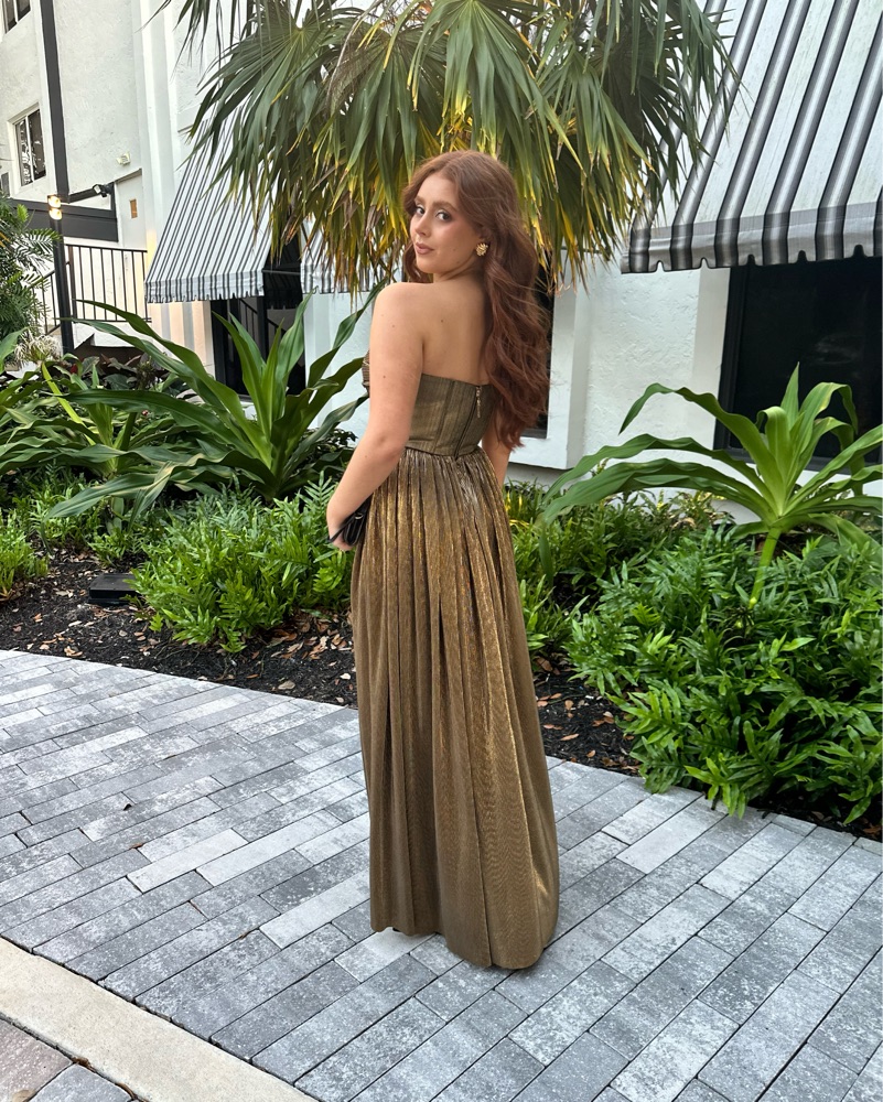 Florence Strapless Gown In Gold by Bronx And Banco - Pickle