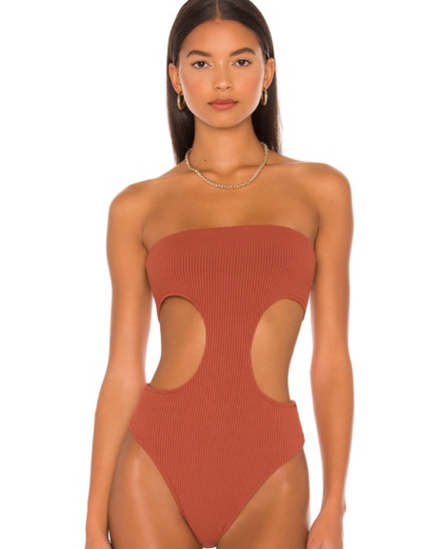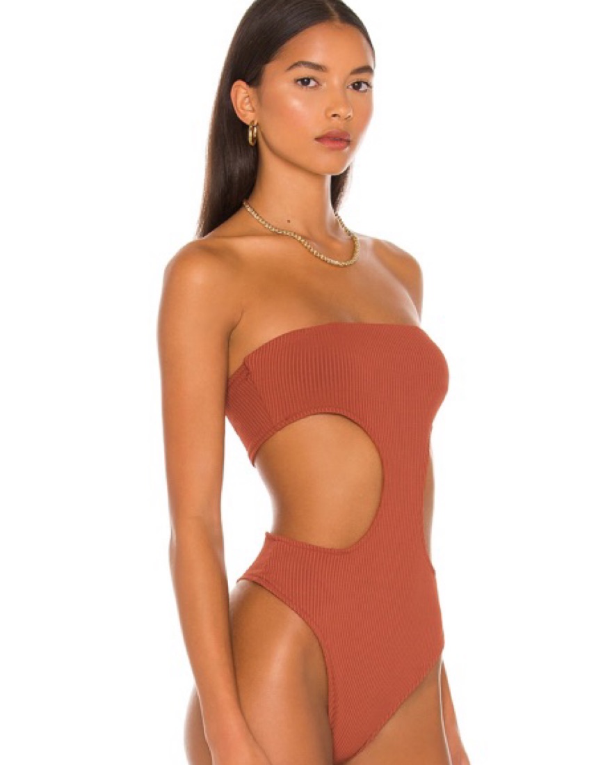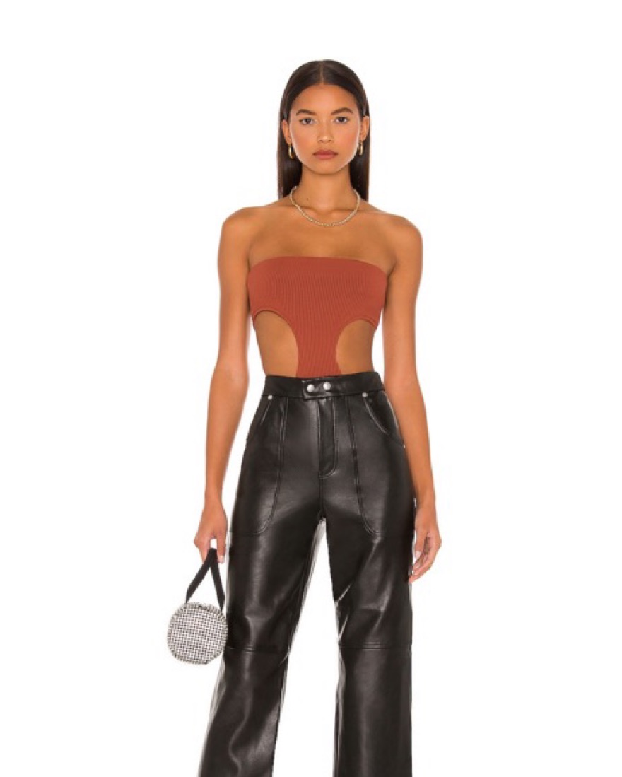 Supwrdown Darcey Cut Out Bodysuit in color rust. Size small.