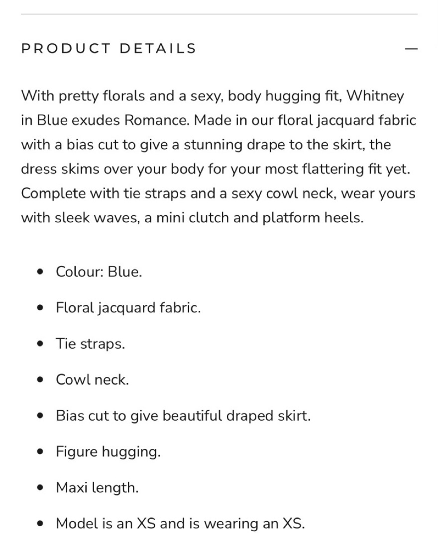 With pretty florals and a sexy, body hugging fit, Whitney in Blue exudes Romance. Made in our floral jacquard fabric with a bias cut to give a stunning drape to the skirt, the dress skims over your body for your most flattering fit yet. Never worn, too big for me