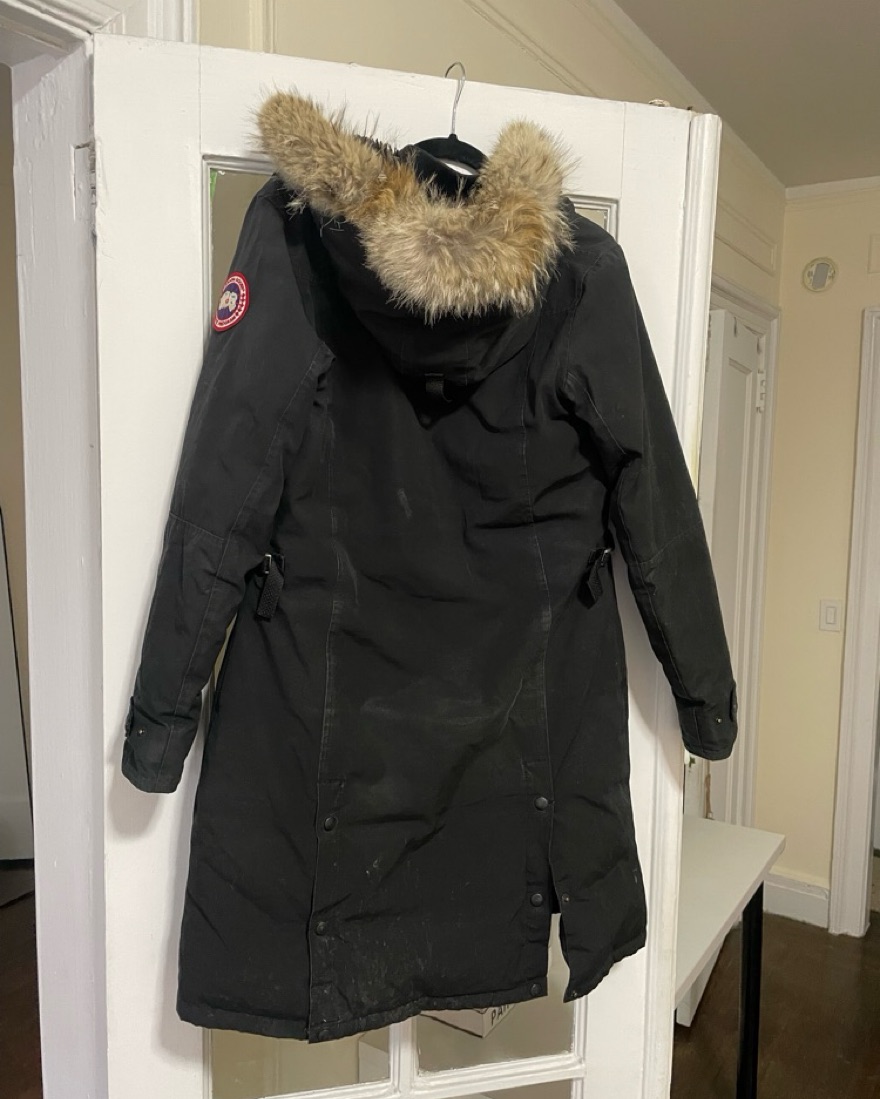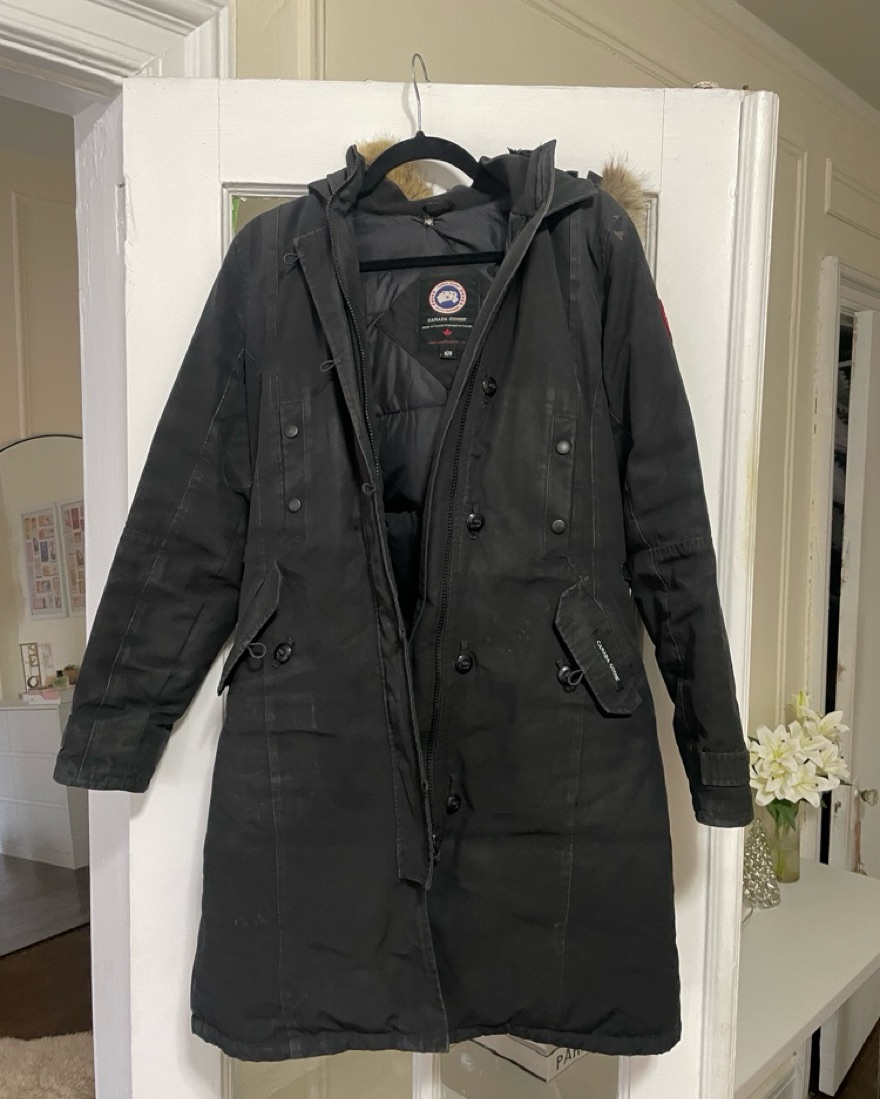 This Canada Goose parka is a sophisticated winter essential. The sleek black design and plush fur-trimmed hood create a polished, versatile look. Size M but def fits snug! Perf for a size small superrrr warm not as worn as the photos look