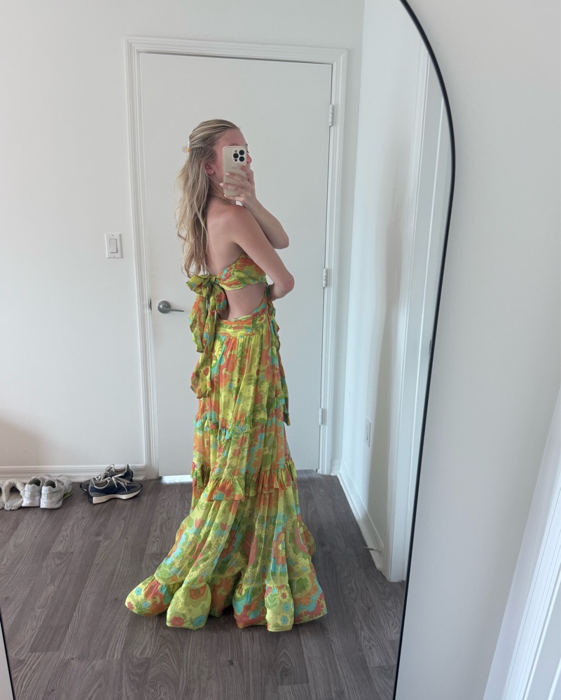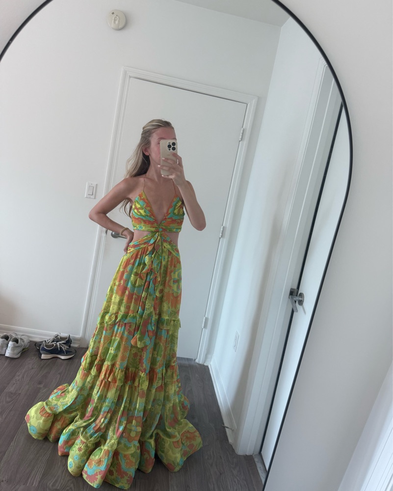 Alexis freya dress color camellia lime. Cutout waist. Ruched bodice. I’d say can fit XXS-S
